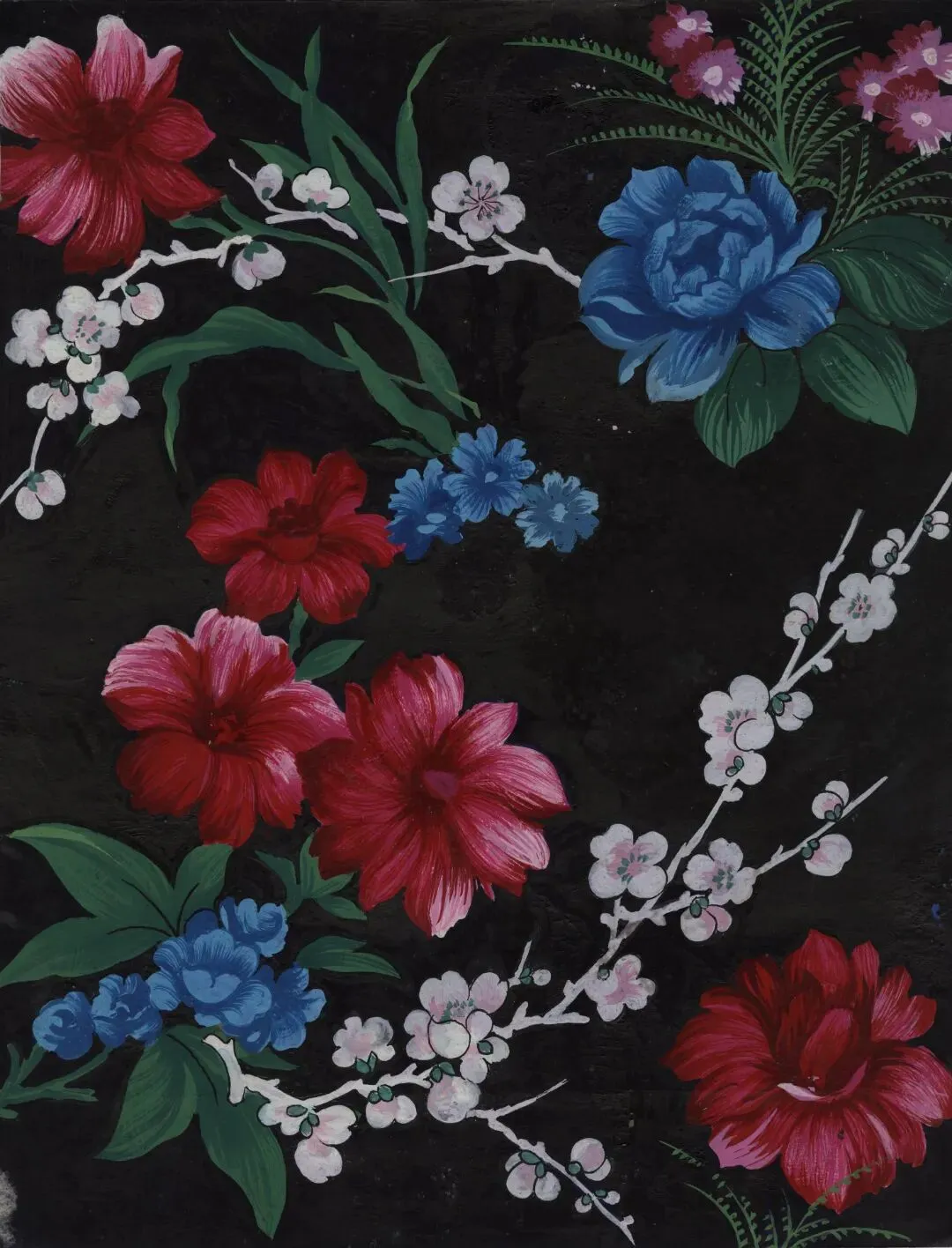 5. 20世纪90年代黑地撇丝花卉配梅花手绘稿