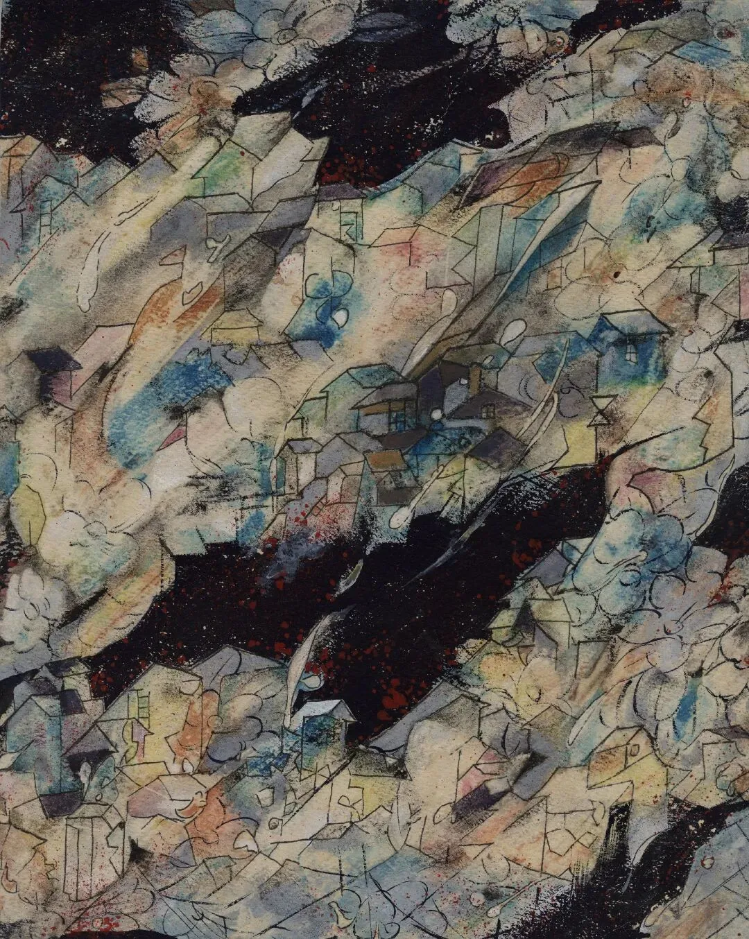 7.20世纪90年代彩绘地花卉村舍手绘稿