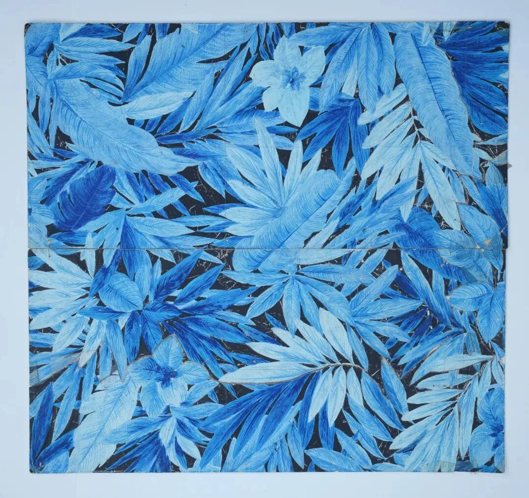 20世纪90年代黑地蓝色撇丝花叶手绘稿