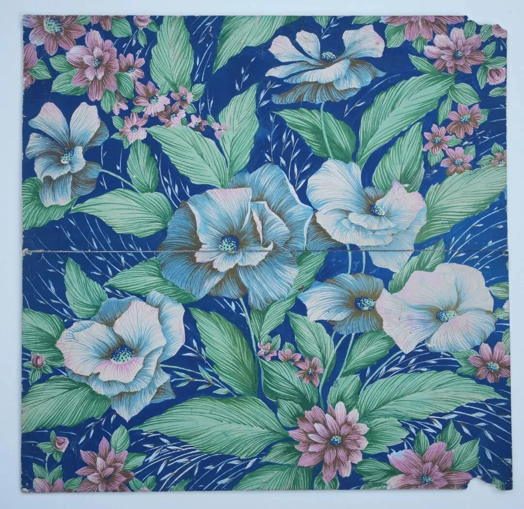 20世纪90年代深蓝地撇丝花卉手绘稿
