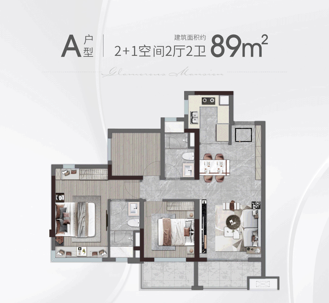 越秀建发·玺樾建面约89㎡户型,配置直接“越级”,配置带飘窗的主卫和公卫!