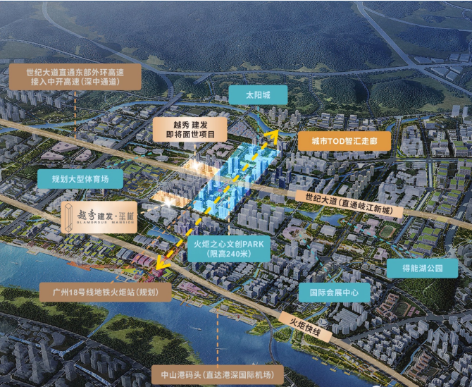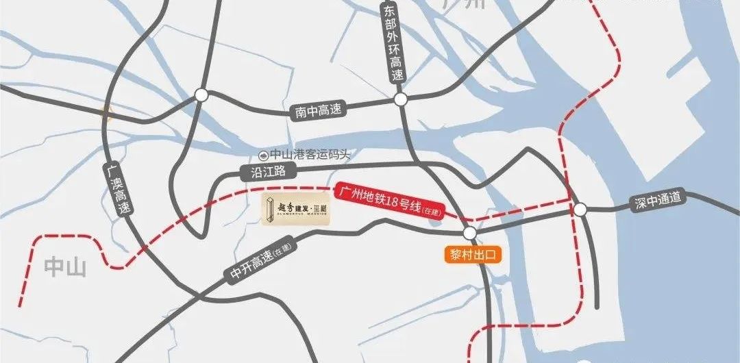 项目旁世纪大道快速路改造,3km直通东部外环高速,接入深中通道;中山港新客运码头联通深圳、香港、澳门机场;广州地铁18号线火炬设站,向北可转乘深圳地铁33号线,快速抵达广深珠及中山城区;带精装交房。