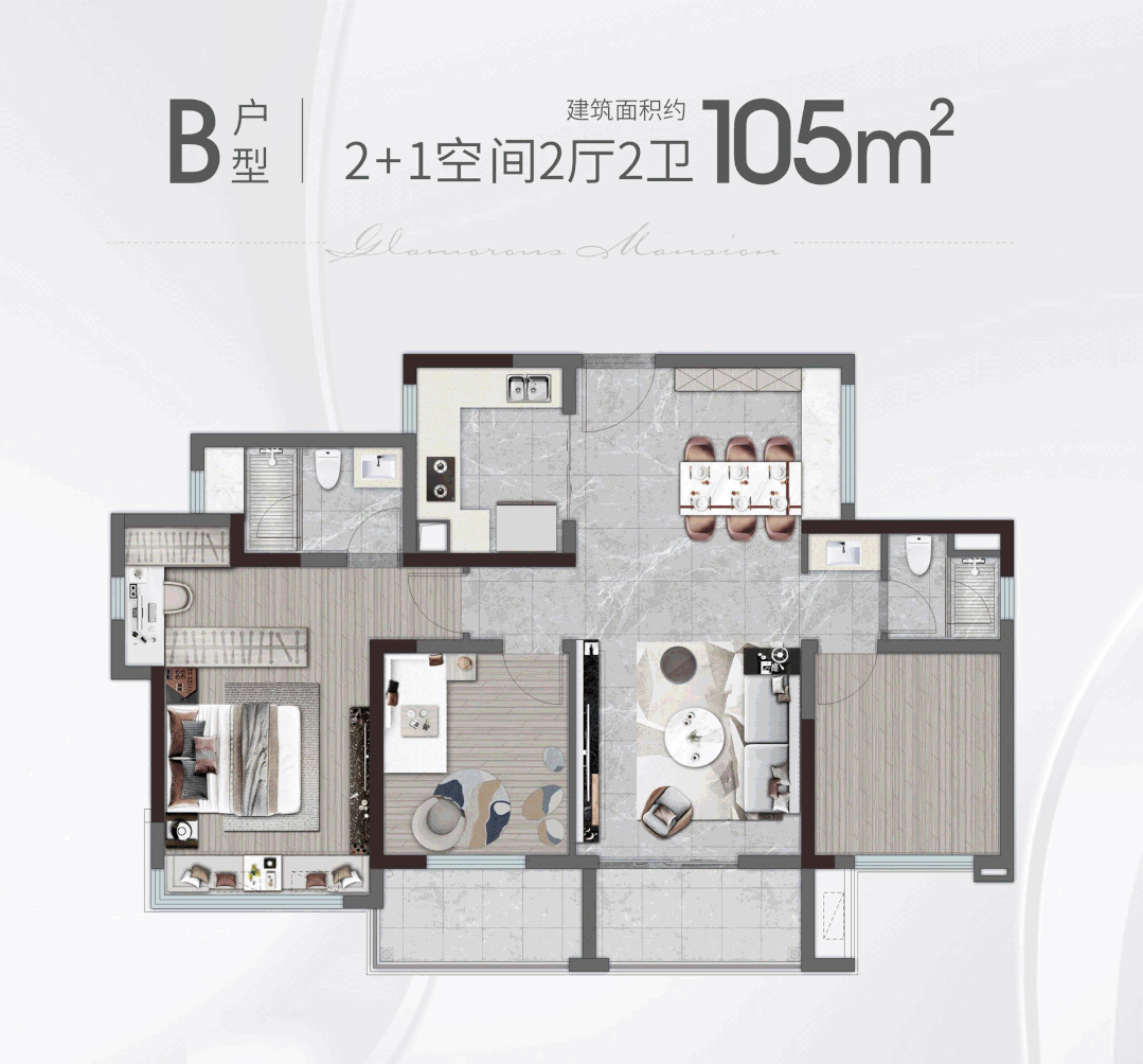 超10米纵深的双厅空间,次卧与客厅阳台总长达6.4米,更是有大宅风范!