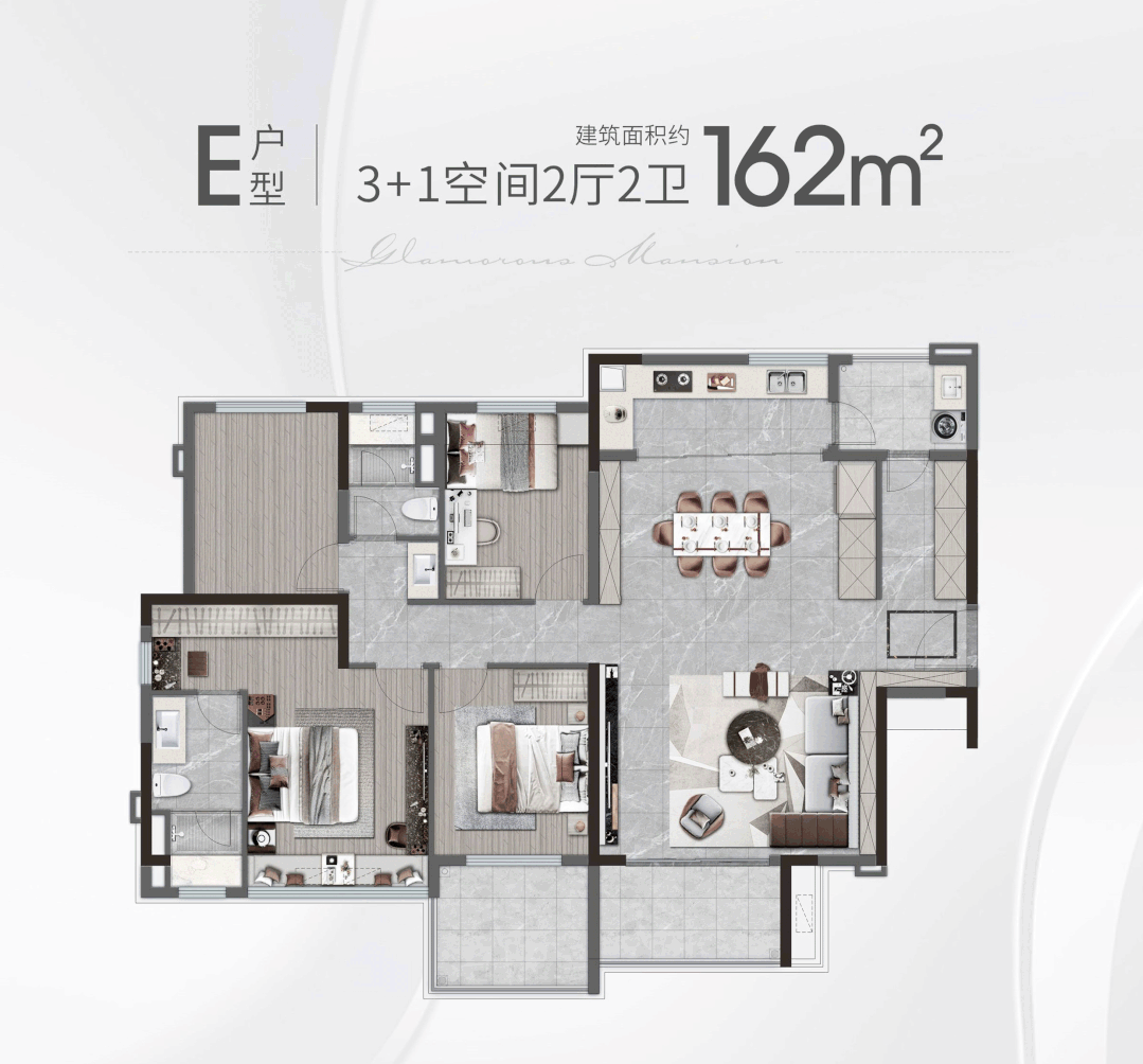 再加上3个超大面积的卧室配置,还有一个魔术空间做书房、茶室、电竞房等,三代同堂也可以轻松应付!