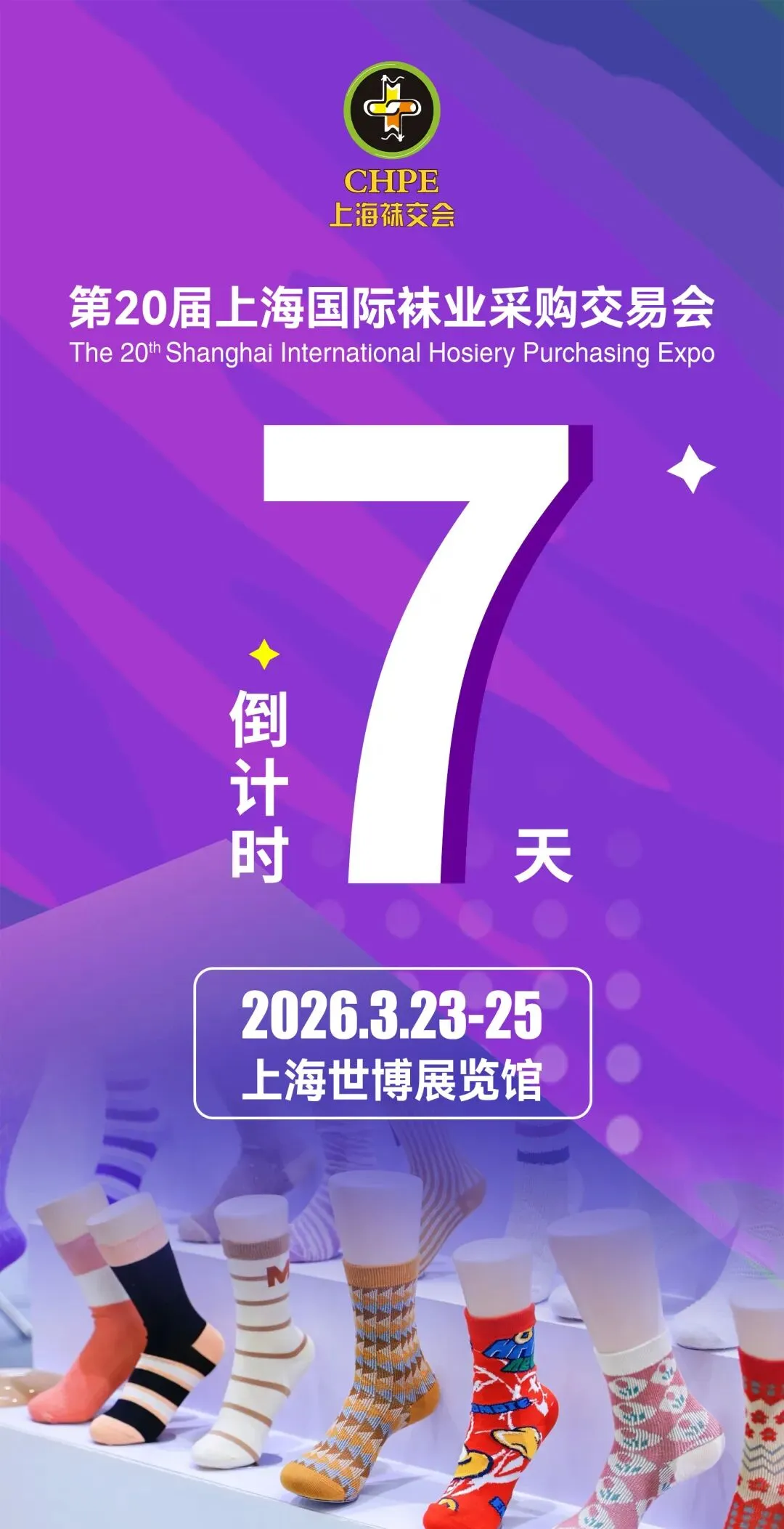 第20届上海国际袜业采购交易会 CHPE 2026 将于3月23-25日在上海世博展览馆盛大召开!展会为期3天,立足织袜行业全品类全产业链全产地,聚焦国际前沿趋势,深度整合全球资源,共商发展、共谋合作,助力推动产业结构与行业生态革新升级