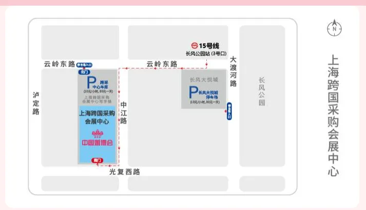 导航上海跨国采购会展中心-北门或周边公共停车场(车位有限)入