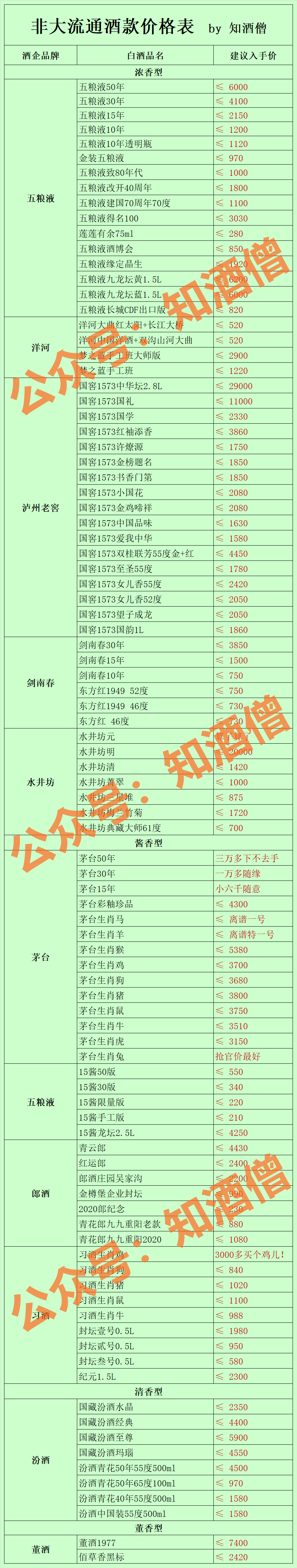 存量市场不断萎缩,过去几年打鸡血吃伟哥夜夜笙歌,把身子骨掏得差不多了,如今的调整期好似是保温杯里泡枸杞,盘串喝茶休养生息。能不能养回来还两说,但从趋势来看,大抵是年过四旬终将走在下坡路。四月底,各大上市酒企纷纷公布了2022年全年财报和2023年一季度财报,可谓是凯歌高奏,营收、利润创新高。兴许有人就疑惑了:都说白酒不行了,那这些亮眼的数据是从哪里来的呢?市场容量并未增加,答案只有一个,他们吞噬的是那些在镜头之外的酒企的份额。听说一些酒企的经销商更迭频繁,一年的时间差不多就大换血了,老经销商离场,再忽悠新经销商进来接盘,像不像击鼓传花?这一轮调整期几乎不可避免地进入了大浪淘沙鱼吃虾的阶段。利润也向上游集中,经销商、渠道商、分销商彻底沦为炮灰,消费氛围变得更加理性。本期新增汉酱和王茅部分酒款价格,主要是普汉酱、茅字汉酱和王茅祥雅、祥邦、祥泰,这几个酒我没怎么买过。可能也是对王茅和华茅带有偏见,我在文章极少提到这两个“茅”。在过去一个月,多数酒的价格比较稳定,少数酒价略有变动,但幅度都很小,在淡季里,白酒的声音小了很多。天气也逐步升温,属于啤酒烧烤小龙虾的季节到来了。要说白酒有什么大消息,可能就数珍酒李渡在港股上市了,由于白酒冲击A股的大门被焊死了,他们退而求其次去了港股,反倒在文宣上成就了“港股白酒第一股”的名头。这并不是白酒行业的第一支港股,目前还在港股垂死挣扎的银基集团也属于白酒行业。更准确地说,他们甚至连“垂死挣扎”也算不上,早就动也不动躺成一具尸体了……我虽然对股票投资毫无兴趣,但仅以我浅显的认知而言,我不太看好白酒在港股的未来。聊回酒价,近来的一个趋势是非头部品牌的高端产品开始降温,价格一路走低,再也不似前两年那么俏,量更是起不来,在头部酒企的蚕食与挤压下,我们很可能今年就有机会看到中等规模的酒企跌入冰天雪地。哪怕是品牌酒,像佰草香、紫气东来、内参、苏酒头排、丹泉等,价格也在不断松动,挤水之后的价格可能只会体现在饮用价值上。有酒友问我伊力开元怎么样,这酒非市售常见酒,我也搞到了一黑一黄两瓶,但还没有试。前几天我和远道而来及本土作战的酒友喝了几款酒,多是冷门酒,有三四款我也是头一次喝,从品饮体验来看,还是要相信大厂嫡系的力量。关于那几款酒,在这里简单说一说。那是周三的晚上,潘哥攒了局,来自甘肃、北京、江苏、上海的酒友欢聚一堂,开头潘哥偷偷倒了三款小酒让大伙儿盲品,是照片里的小酒一、二、四,这是盲品之后拍的照,除了潘哥,没有人知道是什么酒,他只透露了一个是川浓,一个是贵浓,一个是兼香。