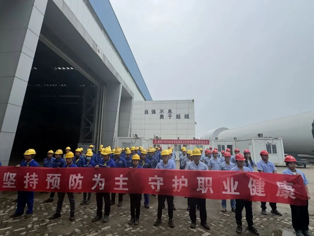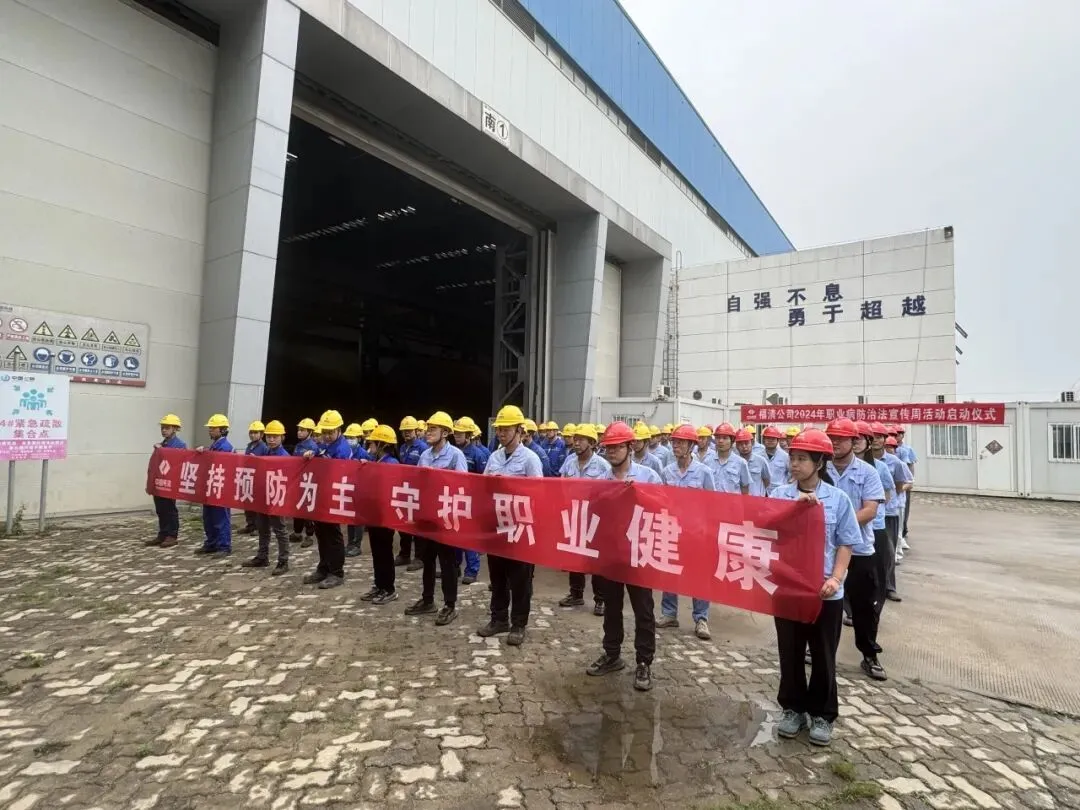 福清公司结合生产实际突出重点,注重实效,开展了形式多样、内容丰富的宣传服务,积极开展活动启动仪式,传达《关于开展装备公司2024年《职业病防治法》宣传周活动的通知》,讲解《职业病防治法》相关知识。同时悬挂横幅、发放宣传资料、海报、张贴宣传画,设立咨询台,向一线劳动者详细讲解职业病防治相关的职业健康知识。
