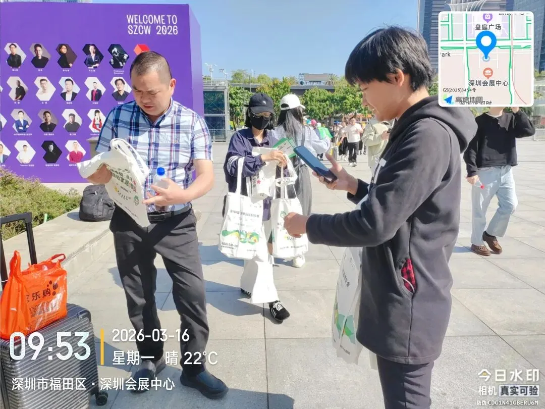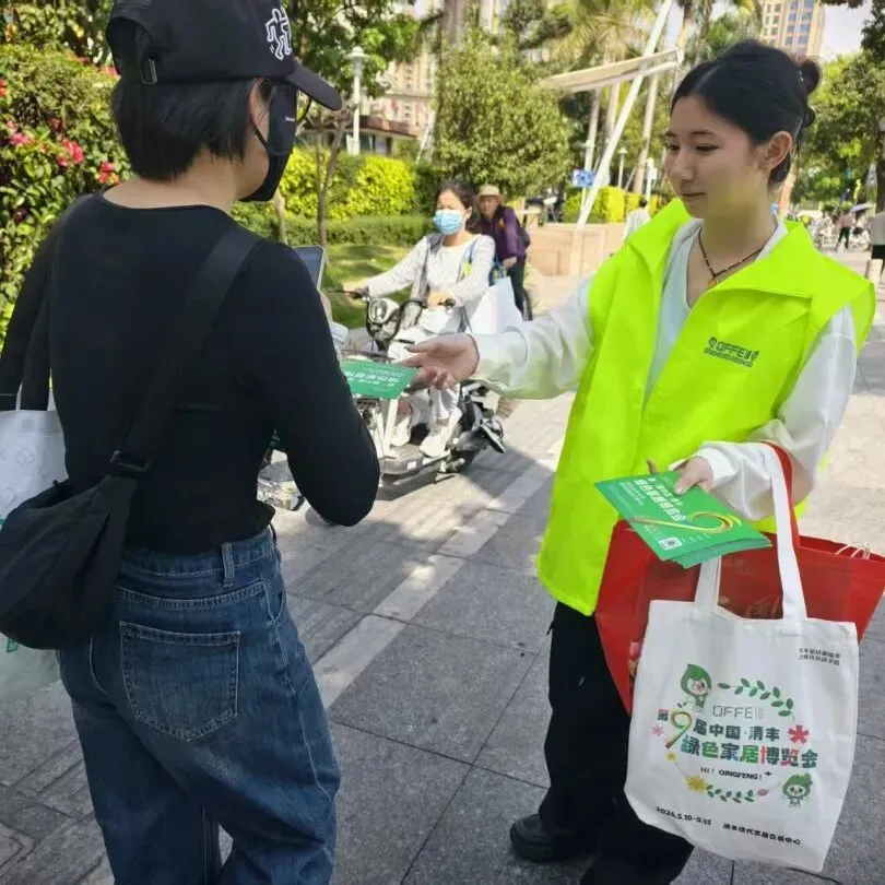 3月15日,第55届国际名家具(东莞)展览会、第41届深圳国际家具展暨深圳家居设计周同期启幕。清丰绿色家博会招商团队兵分两路,东莞展会配备兼职人员90人,深圳展会配备兼职人员60人,团队成员们身着统一工装,奔赴两大展会一线开展招商邀观工作。成员们与参展企业、专业观众深度攀谈交流,递上精心准备的手提袋与邀请函,以细致的讲解,全方位展现清丰绿色家博会的核心魅力:29万平方米超大展区,覆盖实木家居、整屋定制、原辅材料全产业链品类;十余场精彩纷呈的同期活动,汇聚行业前沿趋势与优质资源……让每一位聆听者都能真切感受到清丰绿色家博会的硬核实力与满满诚意。