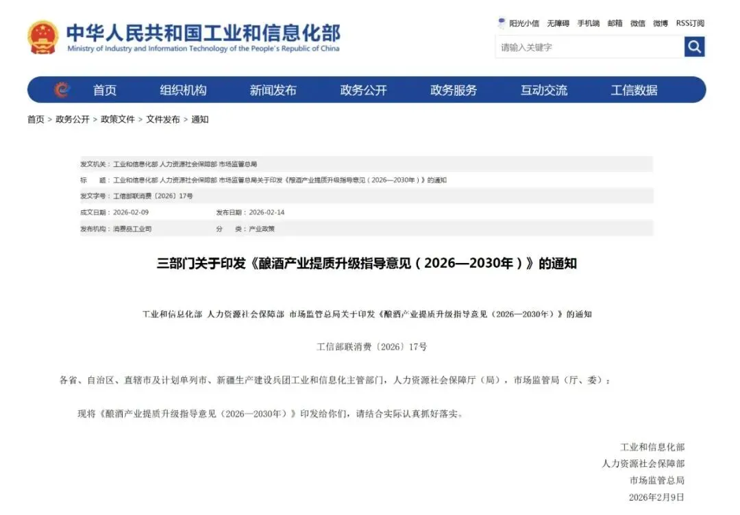 这是最近两年大家说得最多的话题,其实不用慌,今年春节前,工信部、人社部、市场监管总局三个部门,联合发了一份重磅文件——《酿酒产业提质升级指导意见(2026—2030 年)》,相当于国家给白酒行业吃了一颗定心丸,里面把话说得明明白白,不是要打压这个行业,是要带着它做大做强。