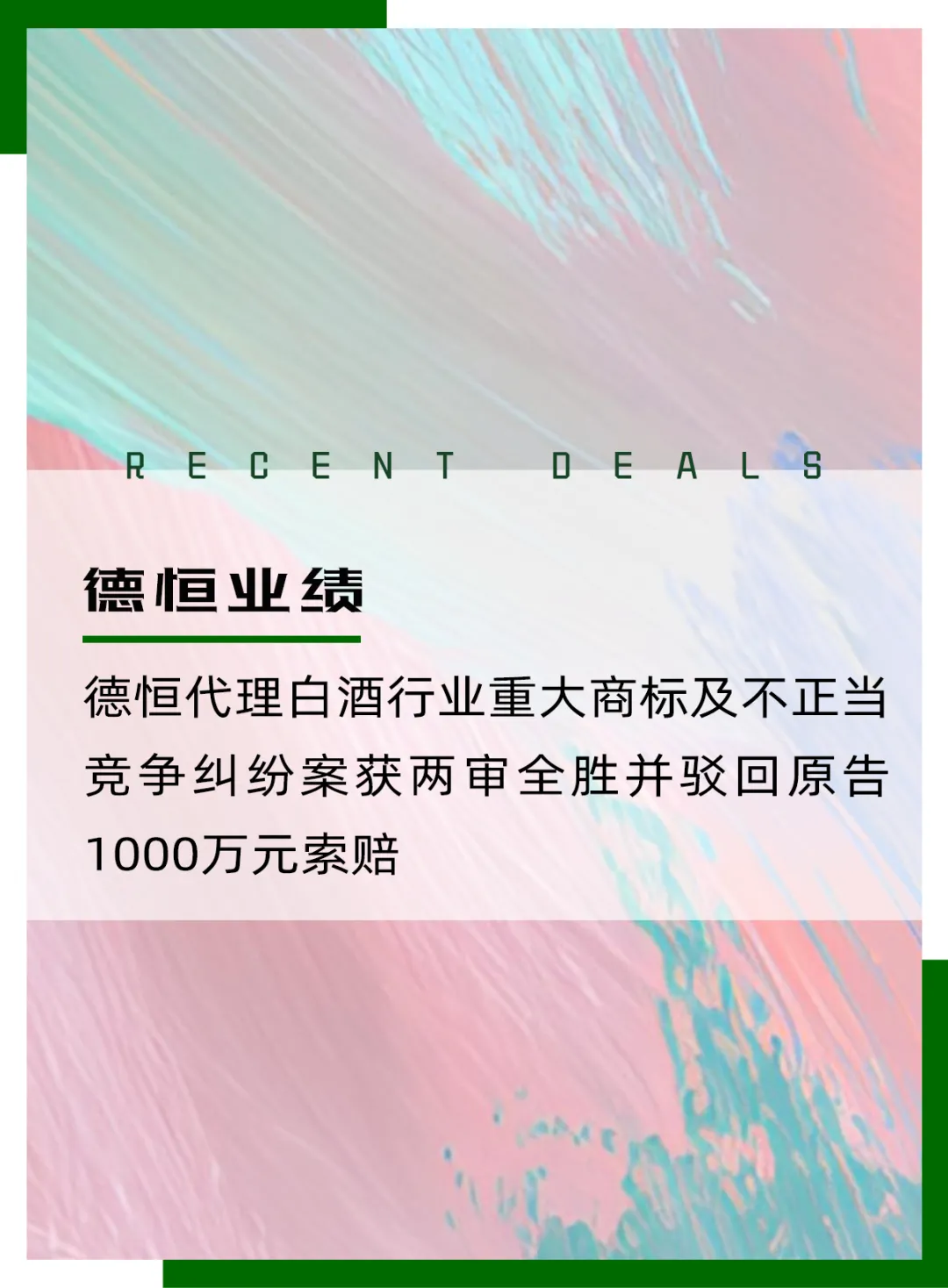 本案历时三年,双方累计提交证据材料近万页,德恒律师凭借专业的法律研判、扎实的证据梳理与精准的庭审抗辩,最终实现一审、二审全面胜诉,成功维护了客户的合法经营权益,打造了白酒行业知识产权纠纷领域的又一标志性案例。