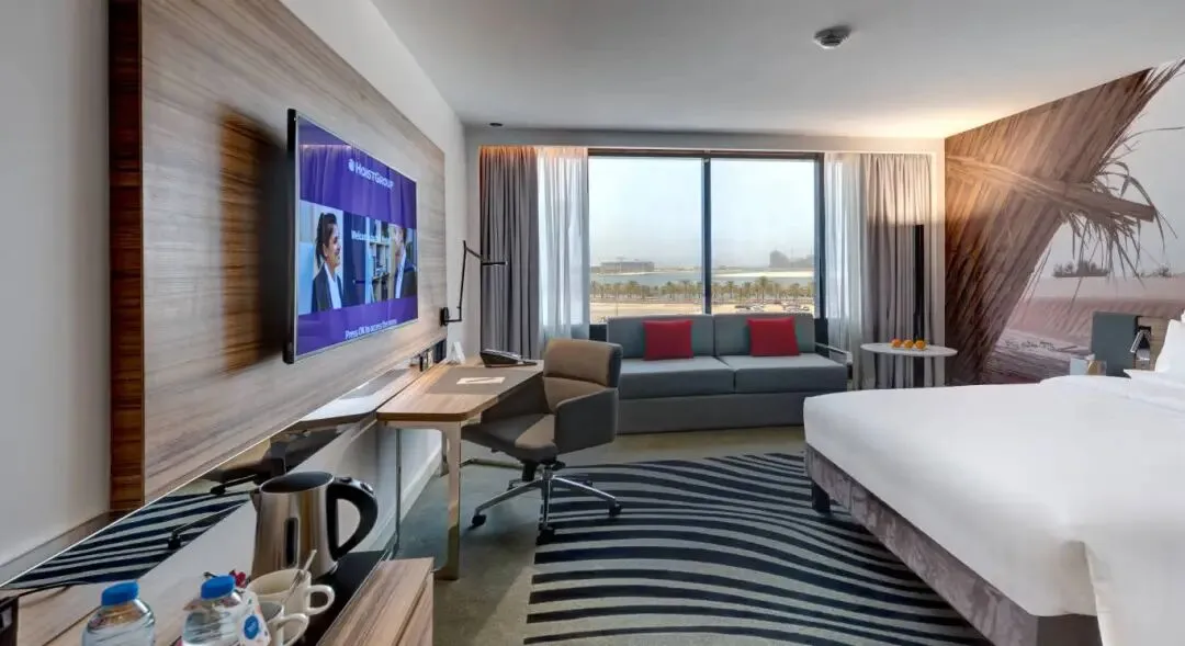 作为全球领先的酒店管理集团——雅高酒店集团(Accor Hotels Group)旗下的中高端商务及度假酒店,200间客房、套房和家庭房以简约现代的设计诠释阿拉伯美学,并贴心地配备了智能办公桌、人体工学靠椅、免费高速Wi-Fi、迷你吧台,让你在拥有阿尔汗潟湖(Al Khan Lagoon)美景的房间里也能劳逸结合。