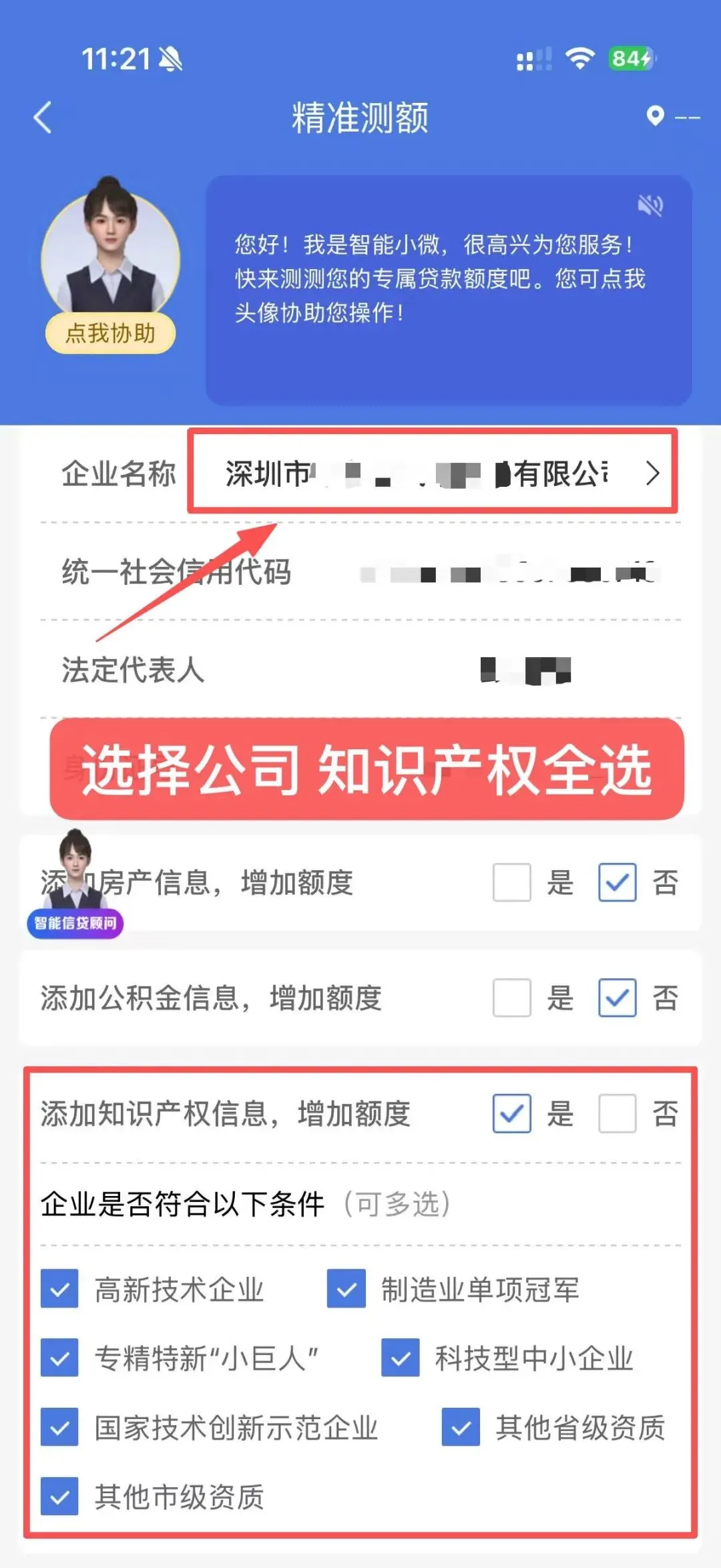 登录APP后,可在首页搜索“善科贷”,或通过【普惠金融】-【科创贷款】进入产品页面,点击“精准测额”进入操作界面。此时需如实填写企业经营信息,包括经营年限、核心业务、研发投入等,重点补充科创相关信息——若企业拥有知识产权,需准确填写专利或软著数量、证书编号;若企业主为高层次人才,需上传人才证书相关信息,这些都会直接影响科技增信额度。