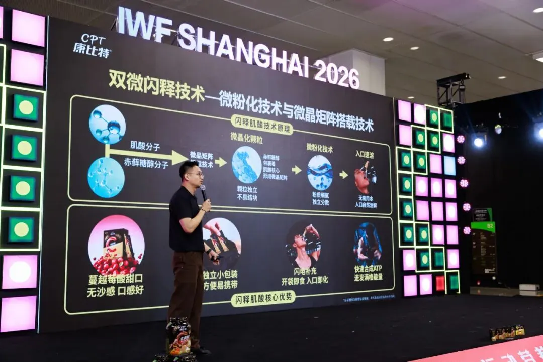 2026年3月13日-3月15日,亚太地区运动健身领域超级盛会——2026年IWF上海国际健身展在上海世博展览馆震撼登场! 为期三天的展会,汇聚了全球行业精英与无数健身爱好者的热切目光。恰逢康比特品牌25周年里程碑之际,不仅荣膺「精准运动营养突破奖」,更携焕新升级的炽金系列产品和全新发布的闪释肌酸重磅登陆展会现场。全面升维的五大更高品质体系以沉浸式的溯源体验,向全行业揭示了其25年领跑行业背后的品质“源代码”。此外,康比特“冠军天团”与多位顶流健身大咖惊喜空降,零距离的硬核互动与肌肉风暴,让康比特展位成为本届展会当之无愧的顶流热力中心。
