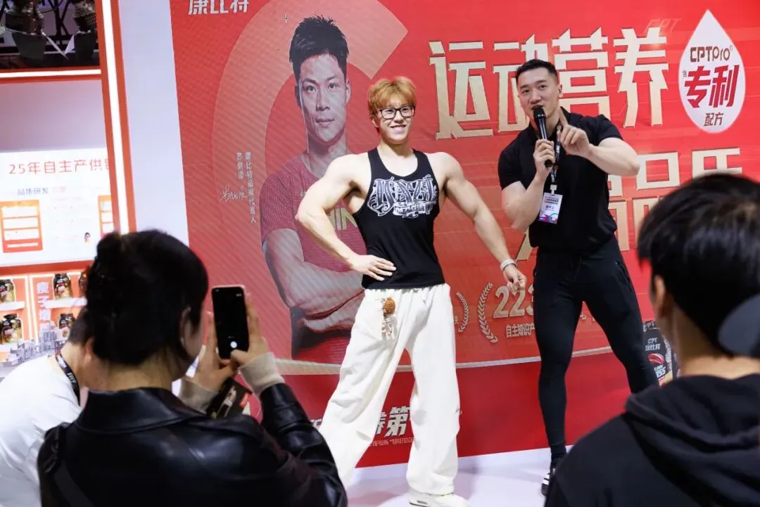 “冠军天团”的接连空降,将康比特展位的热度推向一波又一波高潮。世锦赛健身健美四项冠军第一人、康比特产品代言人郑少忠,亚锦赛男子健体三连冠、康比特产品代言人邢阿龙,IFBB亚锦赛健身小姐全场冠军、康比特产品代言人柏堂静,以及全国比基尼精英赛冠军、康比特品牌推广大使范范库克——四位健身圈的“冠军顶流”齐聚康比特展位。他们以亲身经历诠释了“更高品质”对于冠军之路的意义,更用一次次击掌、一句句鼓励,向每一位热爱健身的观众传递着坚持、突破与超越自我的运动精神。