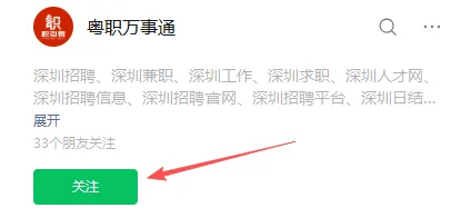 微信搜索【粤职万事通】或扫描下方二维码,关注公众号后,每天接收深圳最新兼职信息,持续找到日结、周末工作