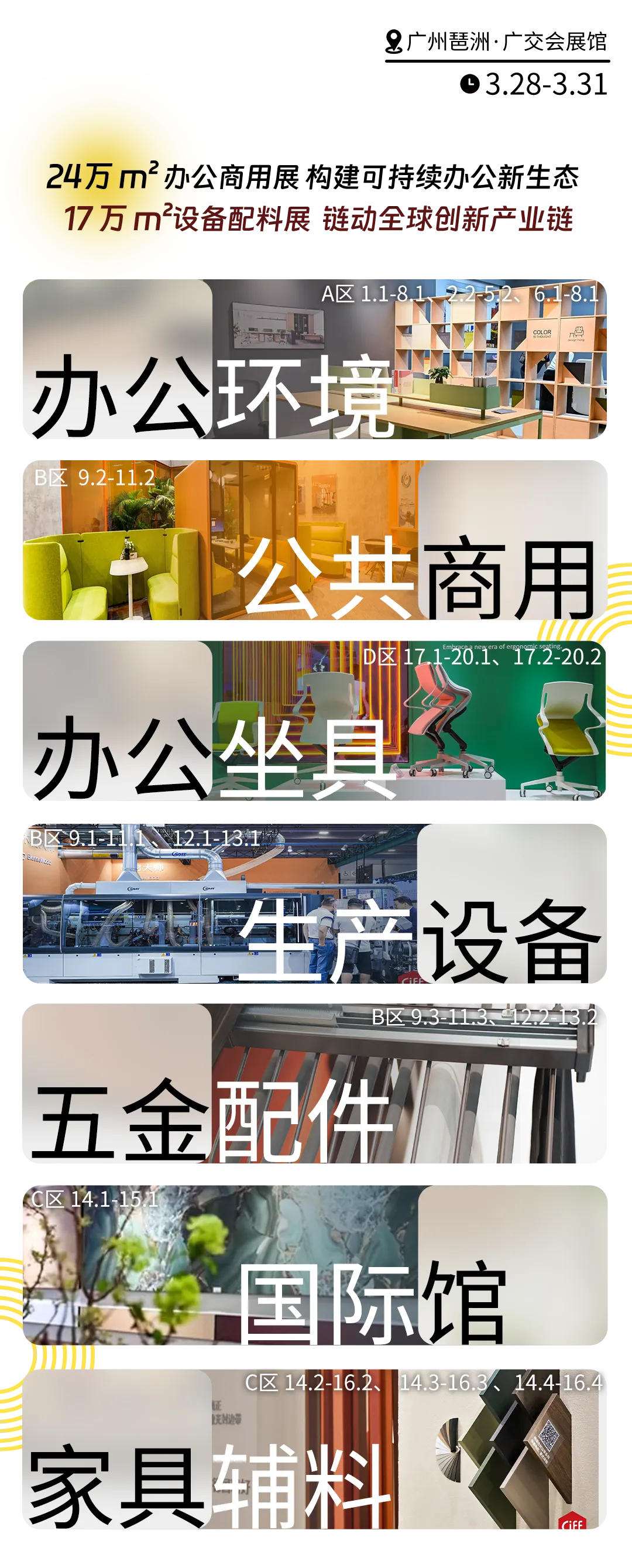 本届CIFF办公商用展围绕“可持续”主题,打造“绿色、智慧、共益”三大亮点。展会贯穿“共益”的理念,持续升级打造系列主题特展及活动。其中,「CIFF魅力之路」聚焦"可持续"方向,构建可持续与创新双轮驱动的行业未来生态;「Linking设计星」聚焦产业协同与商业转化;“设艺文化”特展立足文化叙事与场景创新,「广州办公环境主题馆」则深耕办公空间与家具行业的创新趋势。从商业与人文双重视角,共同回应行业在可持续、智能化与人本体验等方面的深度变革。