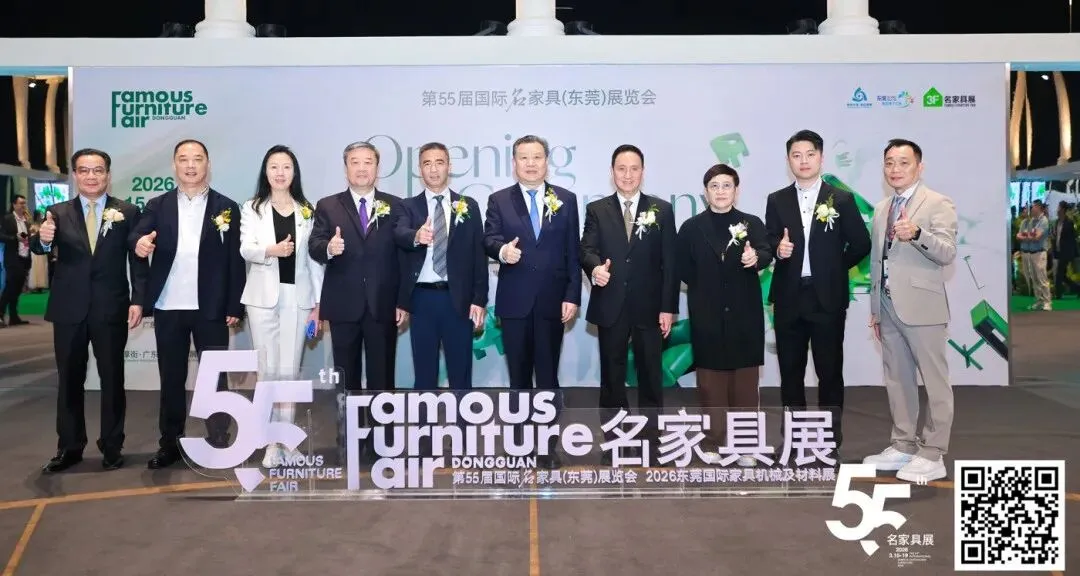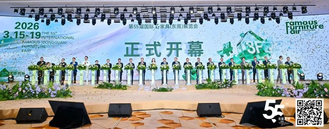 3月15日,第55届国际名家具(东莞)展览会在东莞厚街·广东现代国际展览中心盛大开幕。中国家具协会理事长徐祥楠,中国家具协会副理事长兼秘书长屠祺,东莞市人民政府副秘书长孙海波,东莞市厚街镇党委书记谢卫东,东莞市厚街镇党委副书记、镇长陈尚荣等领导嘉宾和行业代表出席开幕式。