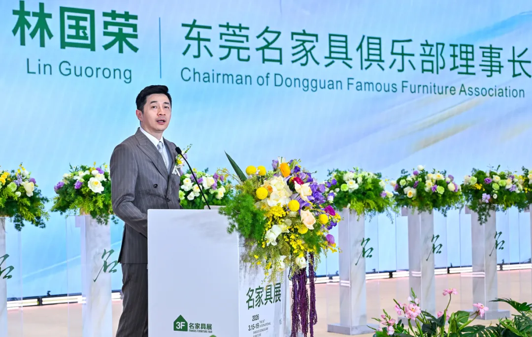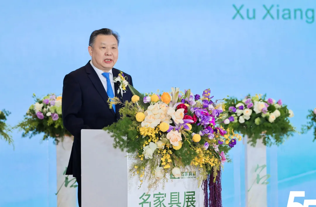 中国家具协会理事长徐祥楠在开幕式上致辞。他指出,东莞厚街是中国家具展览贸易之都、家具产业的重要策源地与领跑者。近年来,东莞市委市政府、厚街镇委镇政府高度重视产业发展,培育区域知名品牌,建设创意产业园及家具文化博物馆,举办家具文化消费节,构建集设计研发、智能制造、全球展销于一体的全链条生态体系,不断提升“厚街家具”品牌知名度和行业影响力,走出了一条具有地方特色的高质量发展之路。本届展会以“聚光”为主题,邀请国内外优秀品牌、设计师,融合领军企业战略布局、呈现新生力量蓬勃朝气,汇聚机械材料前沿科技和家居美学潮流趋势,打造开放共赢、可持续发展的产业共同体,为中国家具产业参与全球竞争、迈向价值链中高端贡献“东莞力量”。站在新的历史起点,他希望东莞家具人积极践行国家战略,紧跟行业趋势,以展会凝聚产业智慧,促进商贸合作,引领消费升级,奋力书写中国家具行业现代化建设时代新篇。