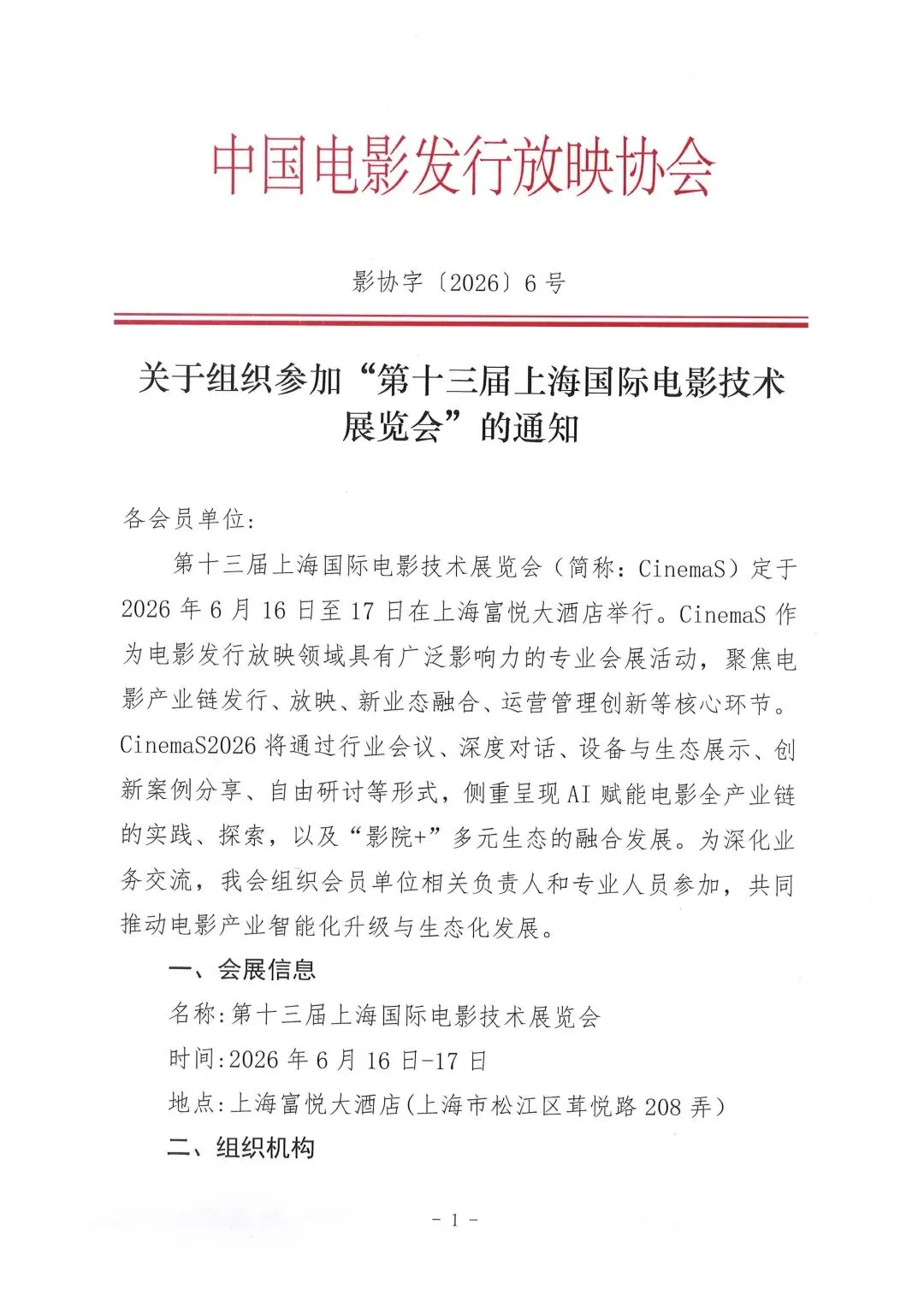 关于组织参加“第十三届上海国际电影技术展览会”的通知