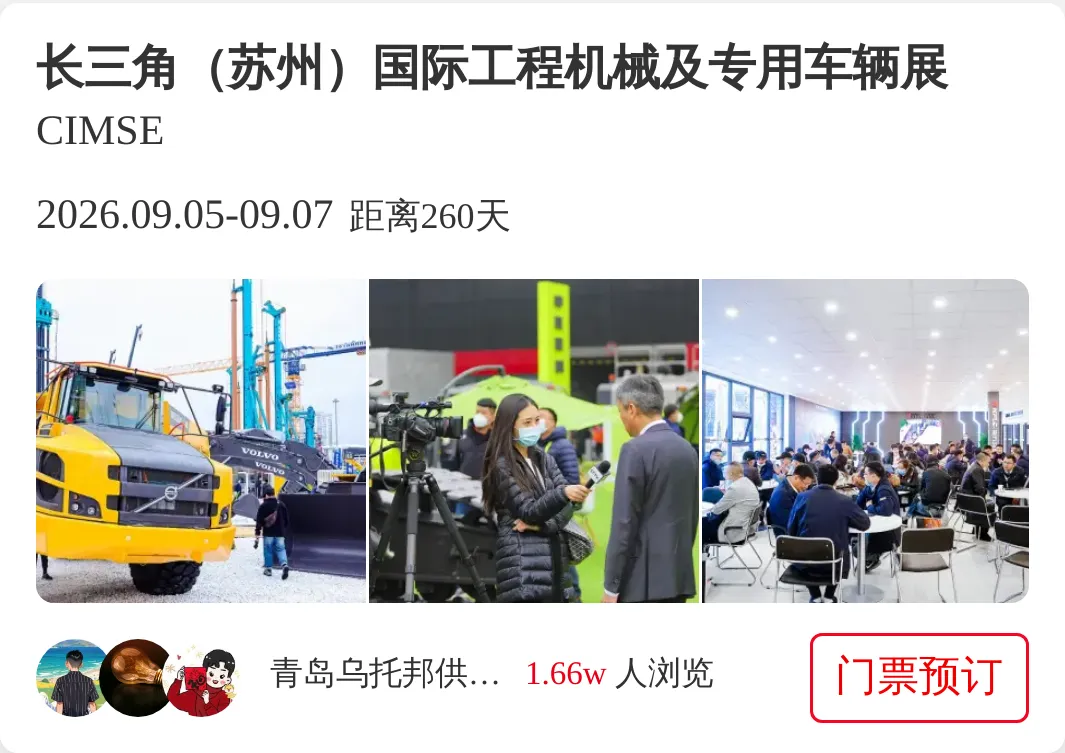 长三角苏州国际工程机械及专用车辆展(CIMSE)是中国最具影响力的工程机械及专用车辆展之一。(本文内容版权归属聚展所有,未经同意,禁止转发)