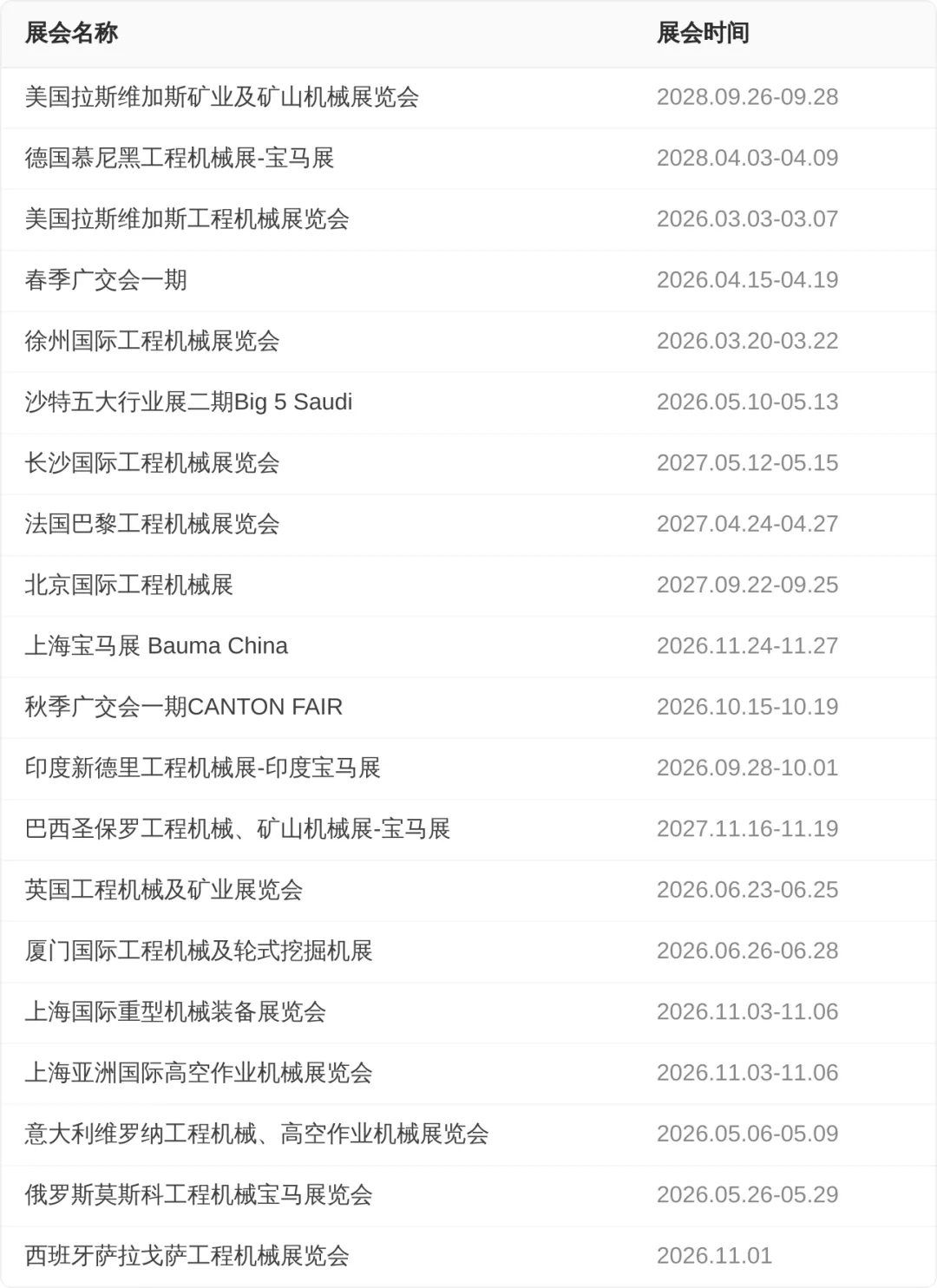 【工程机械展会排期】