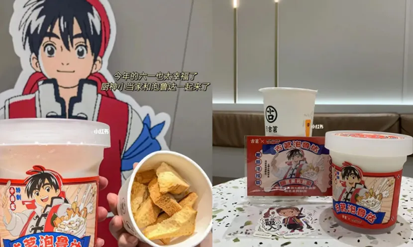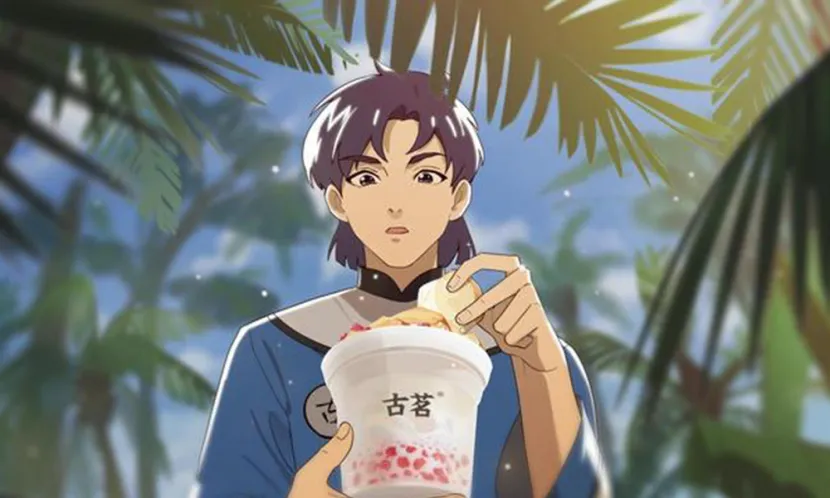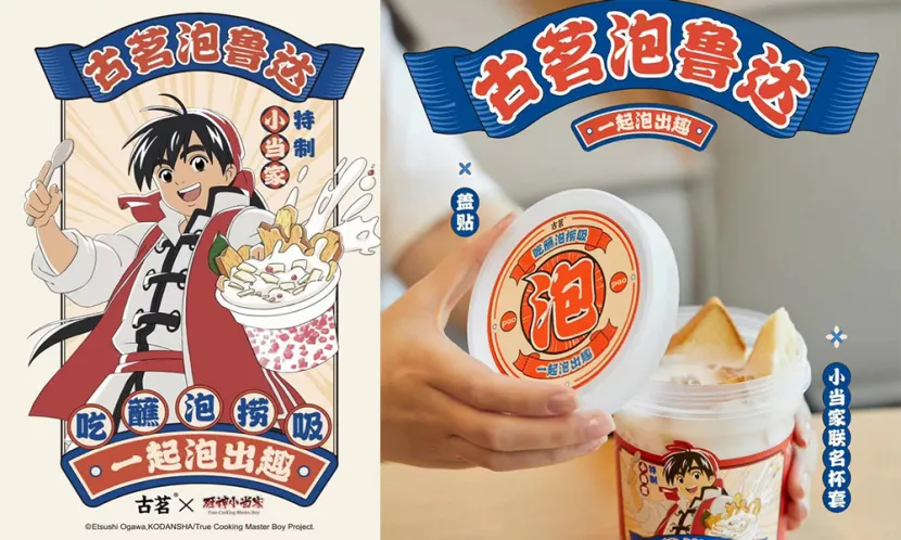 2022年,古茗推出小当家限定“泡鲁达”。杰外动漫特别制作了一支动画短片,把“发光料理”“过电特效”这些名梗与奶茶结合。就算是没有看过动漫的年轻消费者也会因为“这个梗太好玩了”去了解动画。那些原本对老IP陌生的Z世代,通过一杯奶茶,第一次知道“原来小当家是这么回事”。