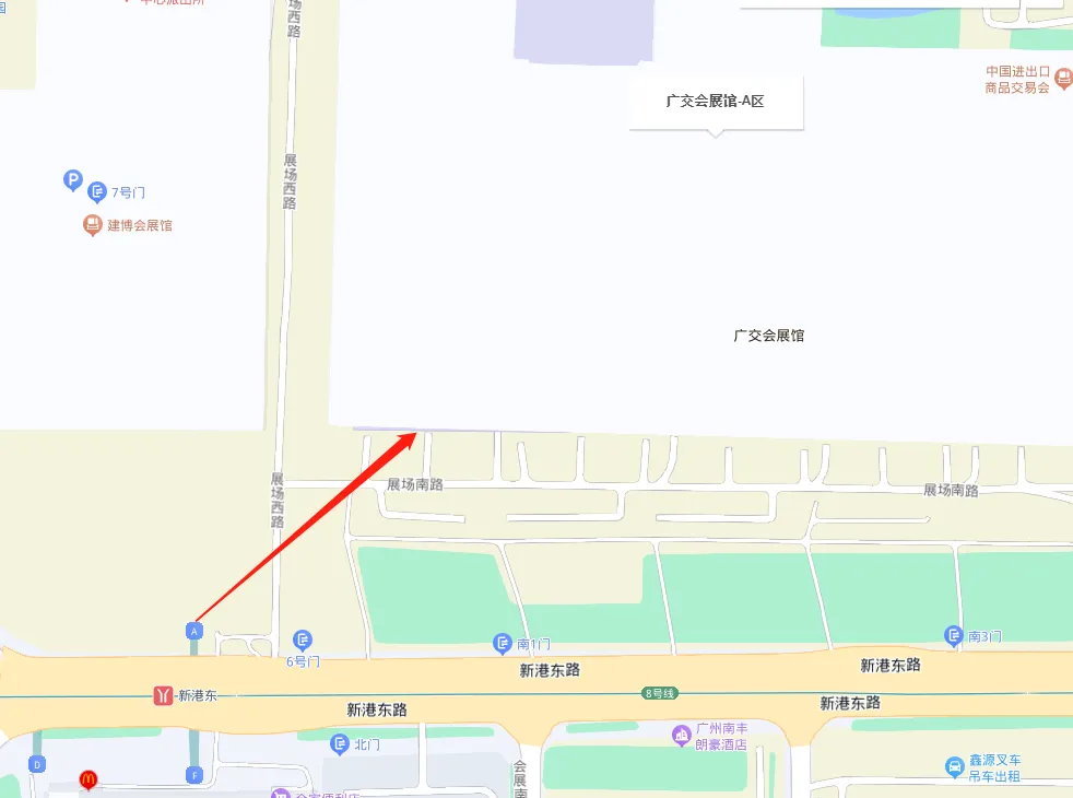 2、搭乘地铁:从地铁广州火车东站总站乘地铁三号线(火车东站-体育西,坐 2 站)到体育西,转乘地铁三号线(天河客运站-番禺广场,坐 4 站)到客村转乘地铁八号线(万胜围方向,坐 3 站)至新港东 A 出口出站后可抵达展馆。