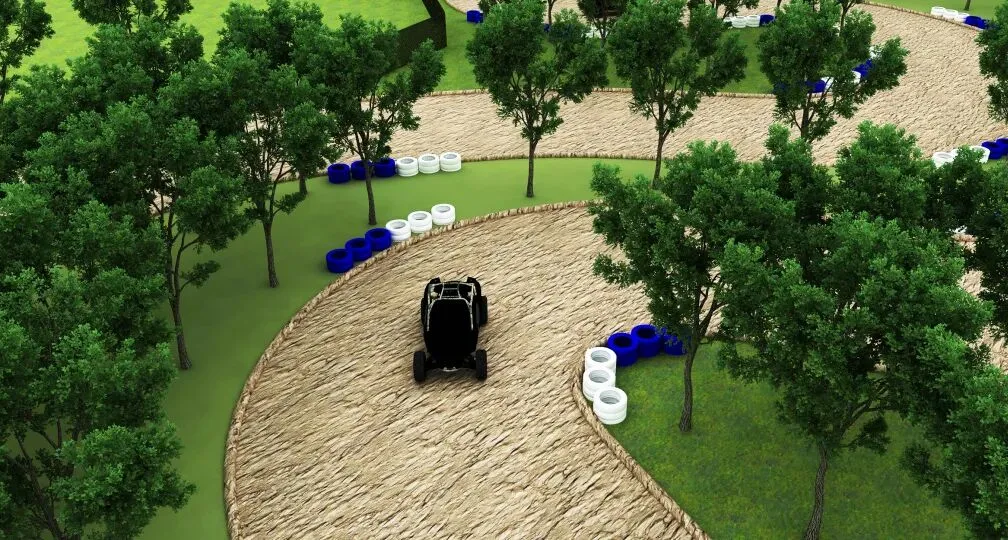 面积相对较小(5000㎡以下),比较平整的路面可发展酷跑越野卡丁车,场地建设相对于大越野和卡丁车更简单,可以不做障碍设计或设计一些难度较低的障碍,无需进行地面硬化。