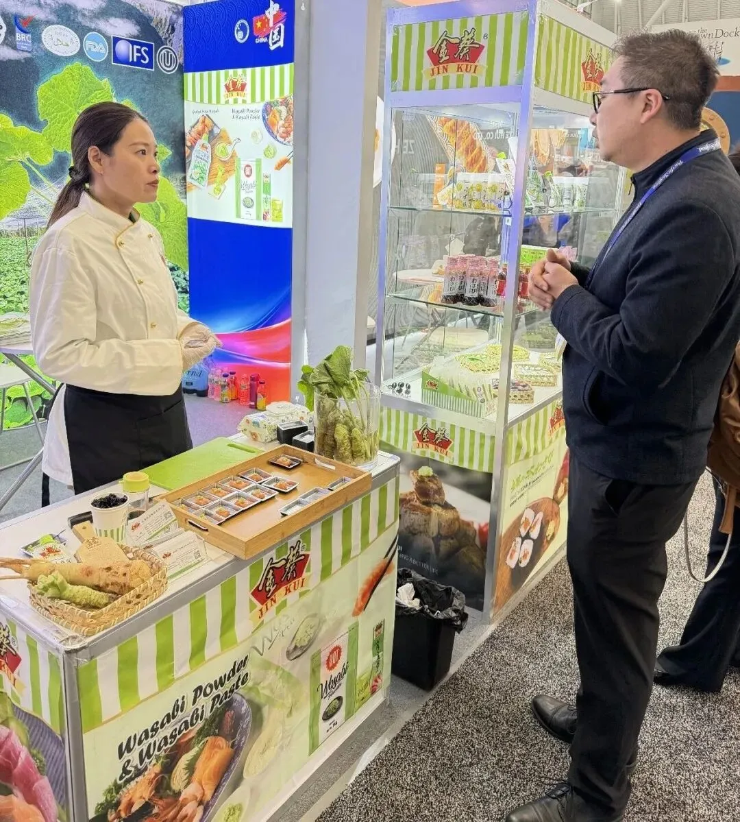 作为一家专注山葵、青芥辣和调味品研发与生产的专业企业,金葵食品37年来,一直坚持长期主义,利他精神,把每一个产品都做给最爱的人吃的企业精神,深耕行业,稳步发展。此次亮相美国水产展,是金葵食品与国际买家、合作伙伴交流学习的又一次机会,也为后续开展更深层次的合作搭建了平台,助力中国味道与国际市场接轨。通过本次展会,金葵食品向海内外客商展示了中国民族品牌的发展成果与创新产品,也收获了来自国际市场的关注。 集团国际贸易部总经理王践,在日本的展会结束当天带领团队连夜赶到美国参加展会,不辞辛苦,彰显责任与担当。 未来,金葵食品将继续坚守高标准高品质的初心,以创新为动力,深耕调味品行业。不断探索新技术、研发健康美味的好产品,努力为全球消费者提供更多优质的调味佳品。让来自中国的金葵山葵风味走向更广阔的国际市场,用匠心与品质,为全球餐桌增添更多健康的中国味道。 ![]() |