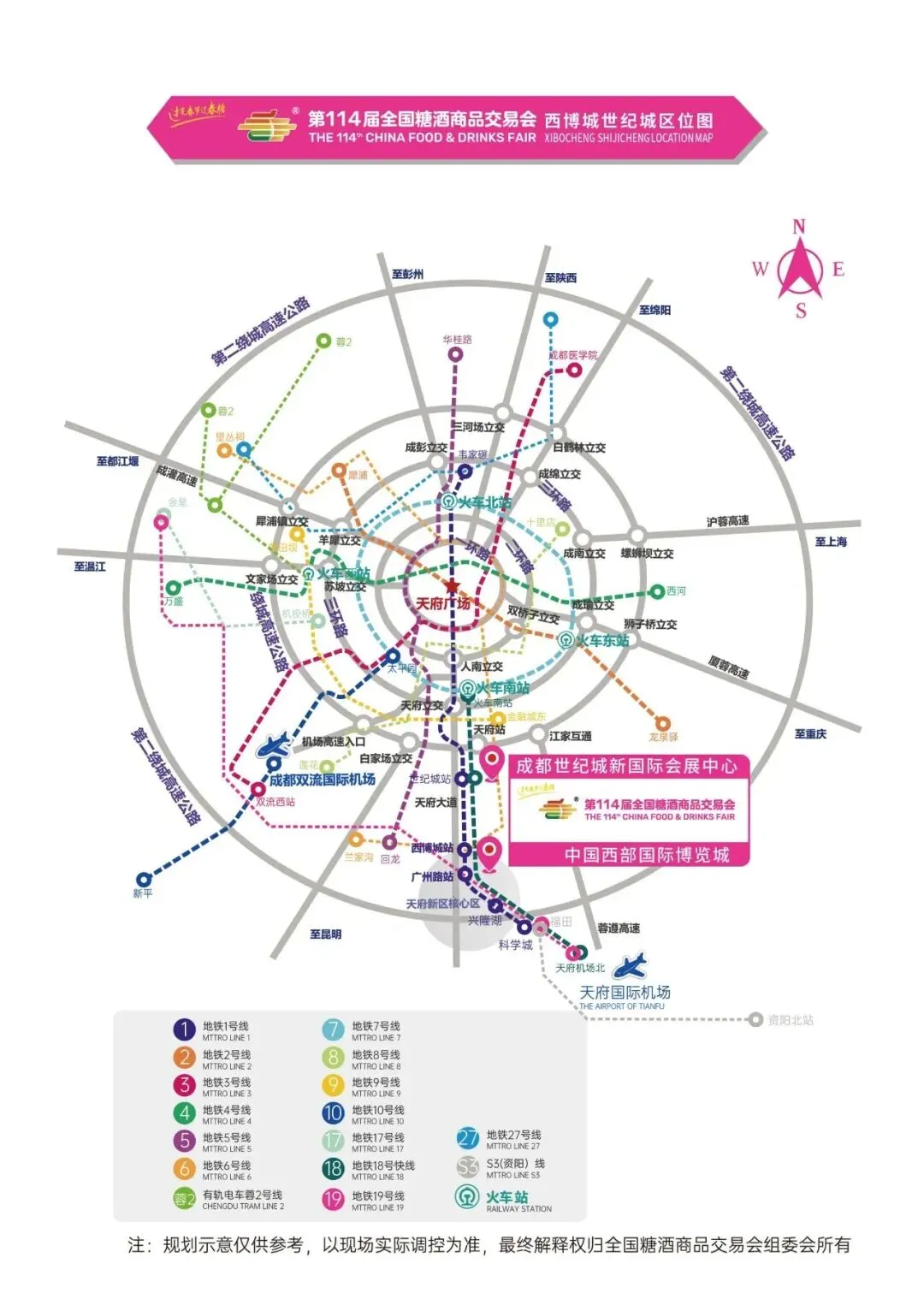 1. 为确保您安全、便捷到达展会现场,请提前关注成都市轨道集团发布的相关信息,优先选择公共交通到达展馆。