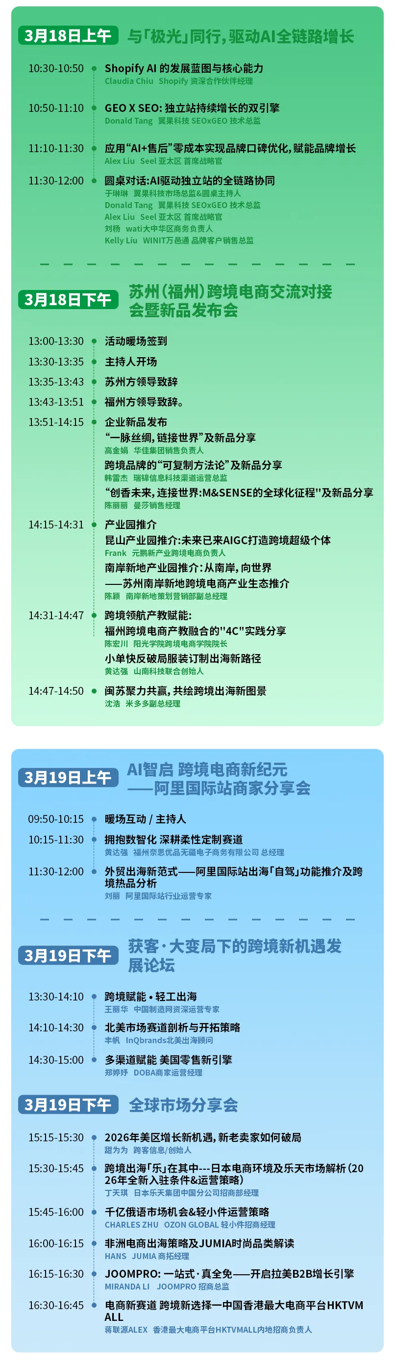 亚马逊全球开店官方团队带来2026最新入驻政策;Shopee深度拆解东南亚市场;速卖通聚焦“海外托管”新模式。还有俄罗斯、非洲等新兴市场机会,一站听完!