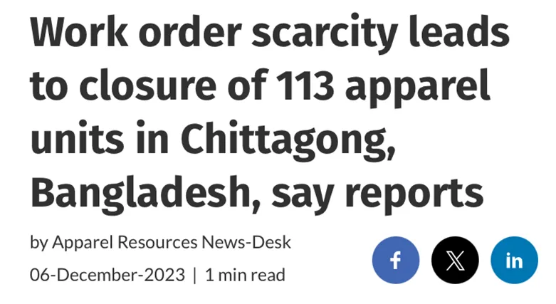 外贸订单短缺!113 家服装工厂关闭!