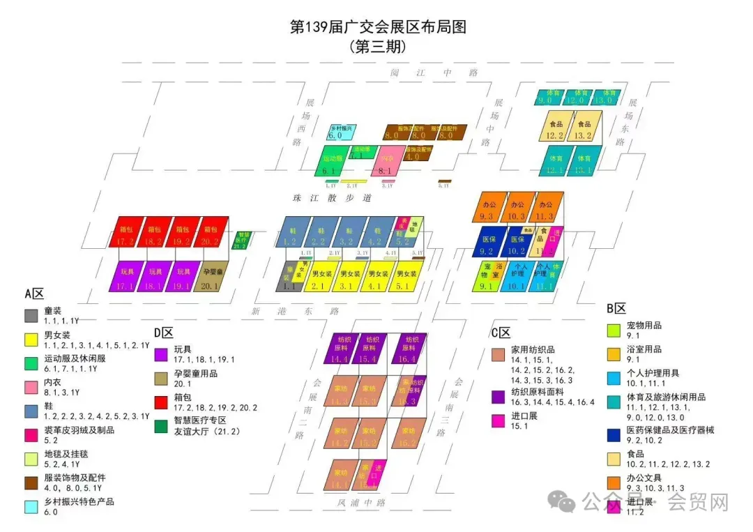 第一期 家用电器、电子消费品及信息产品、电子电气产品、照明产品、新能源、新材料及化工产品、五金、工具、加工机械设备、动力、电力设备、通用机械及机械基础件、工业自动化及智能制造、工程机械(室内/室外)、农业机械(室内/室外)、新能源汽车及智慧出行、摩托车、自行车、汽车配件、车辆 ![]() 建筑及装饰材料、卫浴设备、家具、餐厨用具、日用陶瓷、家居用品、钟表眼镜、礼品及赠品、节日用品、家居装饰品、工艺陶瓷、玻璃工艺品、园林用品、编织及藤铁工艺品、铁石装饰品及户外水疗设施 ![]() 第三期 玩具,孕婴童用品,童装,男女装,内衣,运动服及休闲服,裘革皮羽绒及制品,服装饰物及配件,纺织原料面料,鞋,箱包,家用纺织品,地毯及挂毯,办公文具,医药保健品及医疗器械,食品,体育及旅游休闲用品,个人护理用具,浴室用品,宠物用品,乡村振兴特色产品 ![]() |