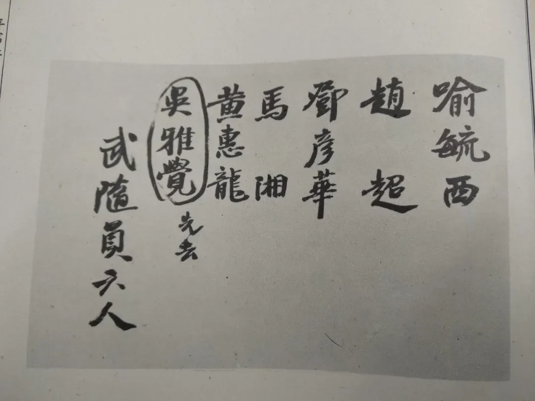 孙中山手书北上随行人员名单。