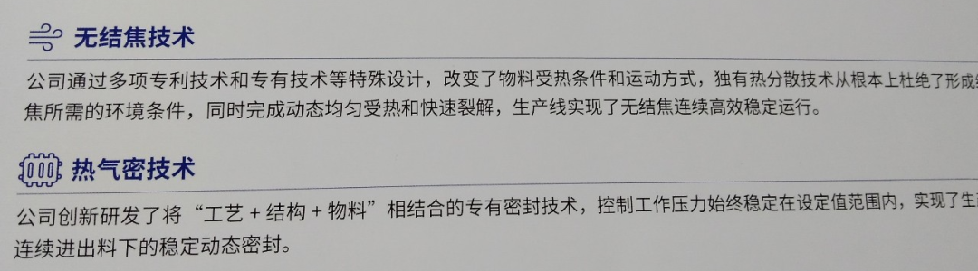 该公司系统掌握有机废弃物工业连续化热解核心技术,在专有 “工艺+ 结构”设计理念和转经过多年自主研发与技术储备,进出料难以动态密封、产出物易聚合等世界行业难题,实现对有机废弃物的减量化、无害术组合下,解决热解系统结焦、化处理和资源化利用,并确立了公司在热解技术领域的领先优势。