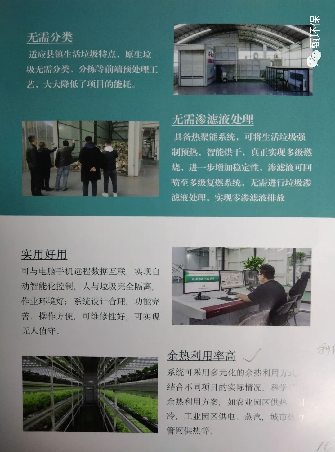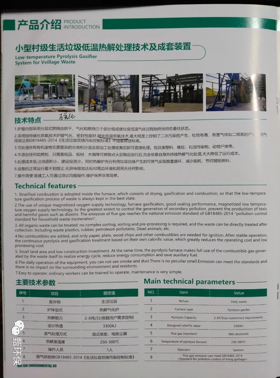 该公司致力于解决我国县级生活垃圾、农林废弃物等一站式综合处置。公司科研团队专注于中小型垃圾处理研究;团队十余年攻关、创新研制了新型炉排、炉体结构、形成多级燃烧、“四个精准”及高原燃烧的第五代技术,实现日处理5-300吨垃圾热解气化无极设计的最优技术方案。