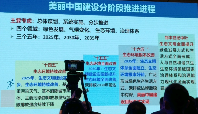 生态环境部环境规划院严刚院长,以协同减污降碳,建设美丽中国为主题做了报告,介绍了美丽中国建设分阶段的推进过程。介绍了美丽中国建设的重要载体,每一个项目都是美丽中国的美丽细胞。当前我国生态文明建设面临实现生态环境根本好转和碳达峰碳中和两大战略任务。基于环境污染物和碳排放同根同源性,协同推进减污降碳已成为推动我国经济社会发展全面绿色转型的必然选择,加快构建减污降碳一体推进的任务体系,实施目标、空间、领域、措施、政策、六维协同,实现减污降碳协同增效;加快编制一体化融合清单,构建协同度评价体系,建立健全措施库,行业耦合优化路径,强化空间异质性研究。