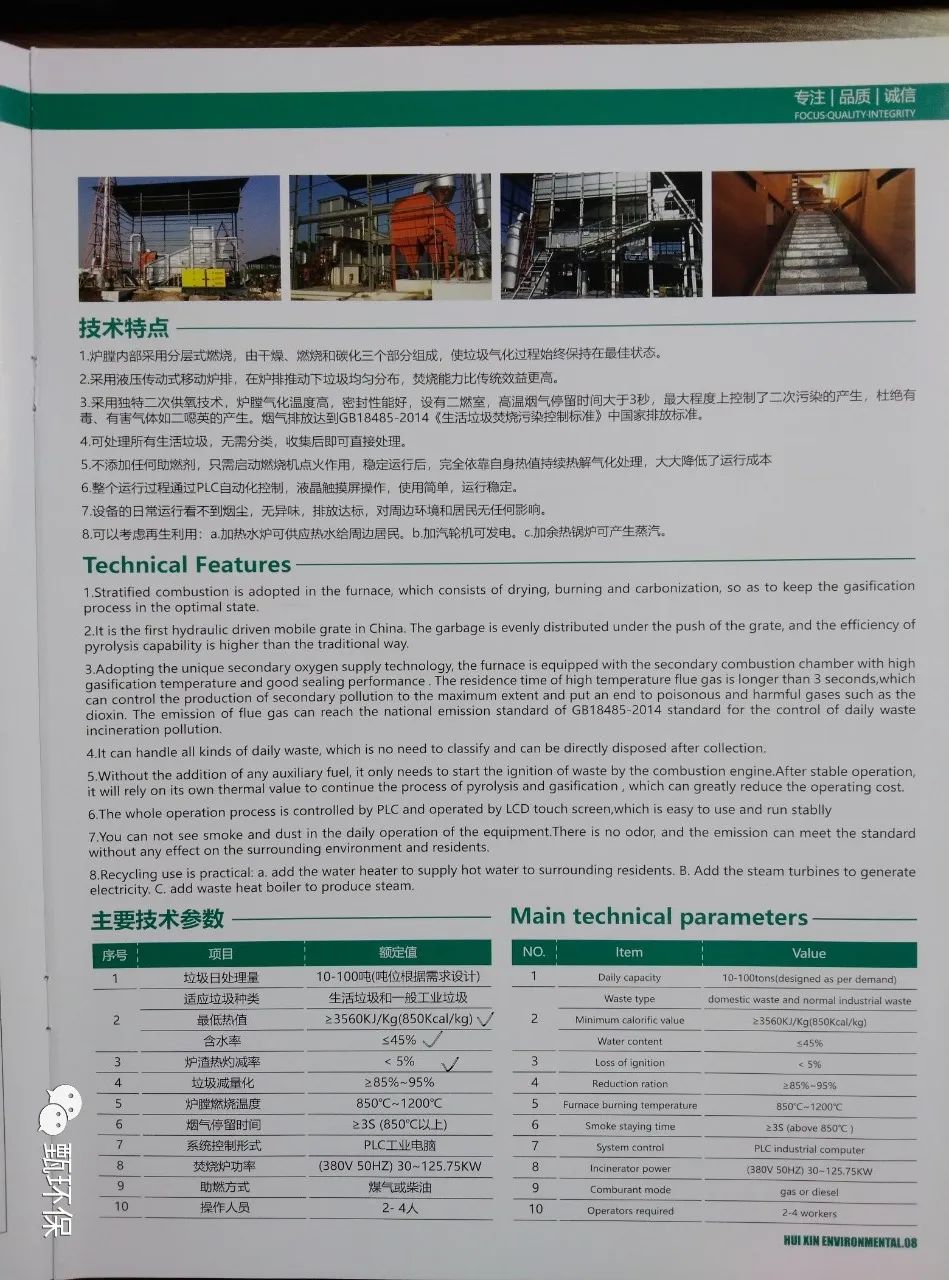 技术特点:无极设计、无需分类、超净排放、实用好用可智能化控制、余热利用率高。