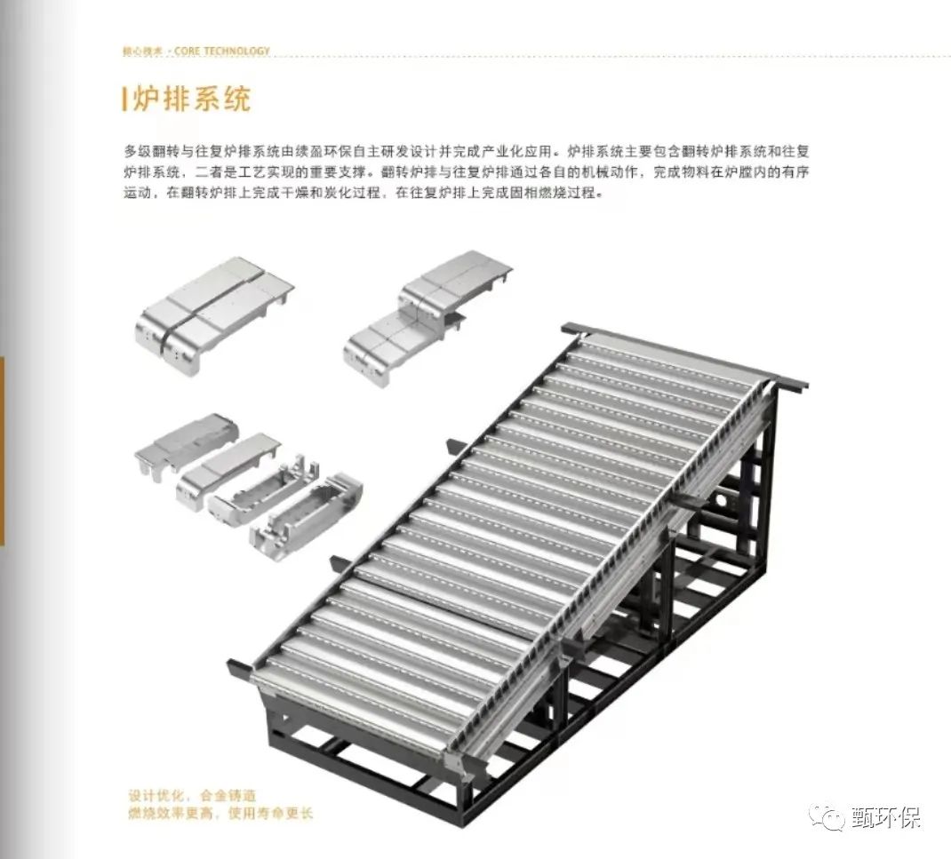 炉排系统:多级翻转与往复炉排系统由续盈环保自主研发设计并完成产业化应用。炉排系统主要包含翻转炉排系统和往复炉排系统,二者是工艺实现的重要支撑。翻转炉持与往复炉排通过各自的机械动作,完成物料在炉胜内的有序运动,在翻转炉排上完成千燥和炭化过程,在往复炉排上完成固相燃烧过程。