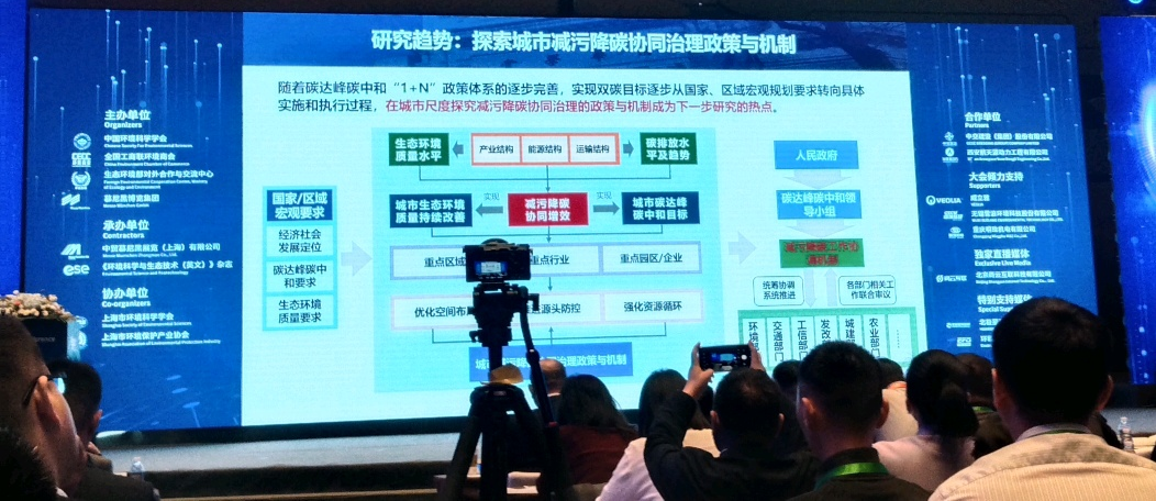 清华大学贺克斌教授针对减污降碳协同推进碳中和长期战略做了主旨报告。我国主要大气污染物排放量的攀升势头逐渐被遏制、减污降碳协同处理是实现气候目标和空气治理改善的关键,介绍基准大气成分排放模型及数据库,面向双碳目标的本地化精细化综合评估模型开发等,探索城市减污降碳协同治理政策与机制。