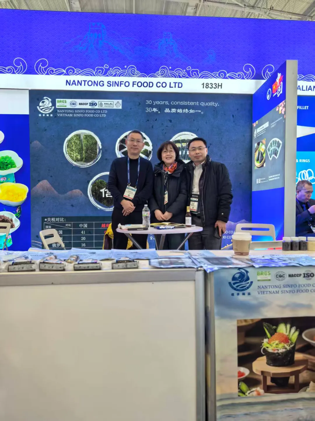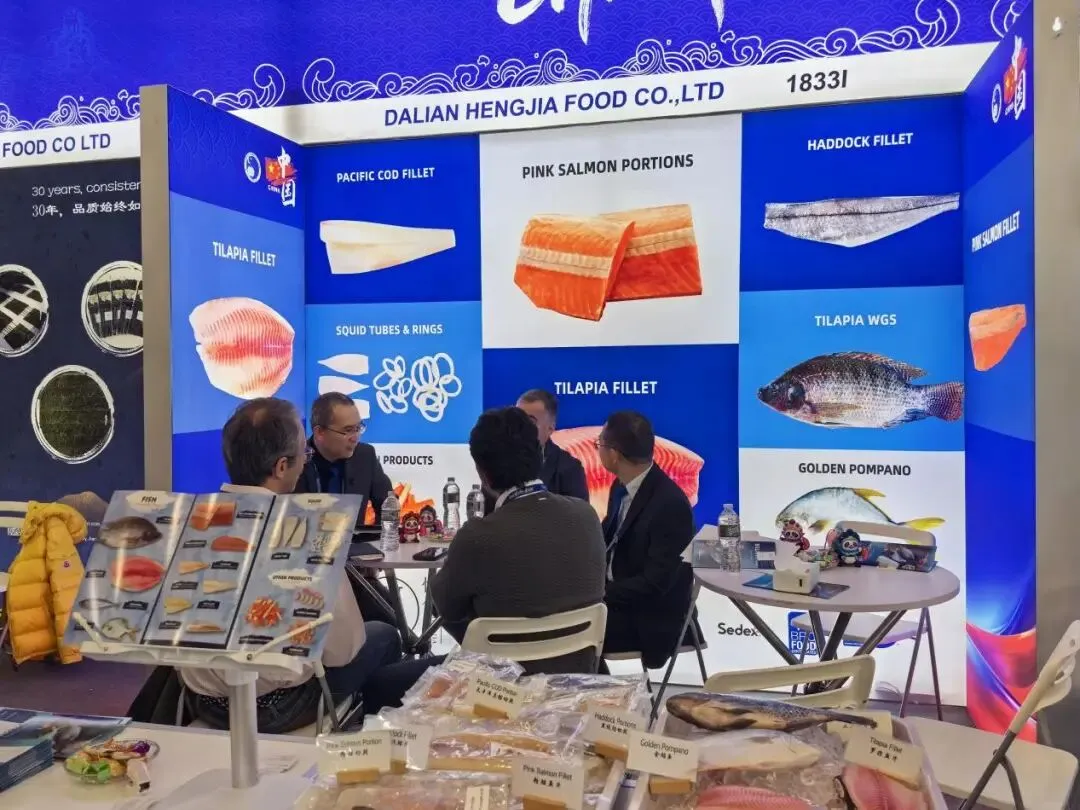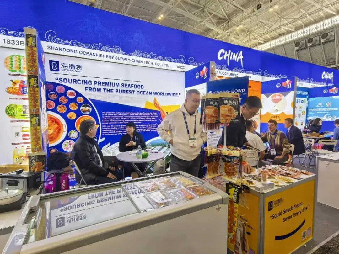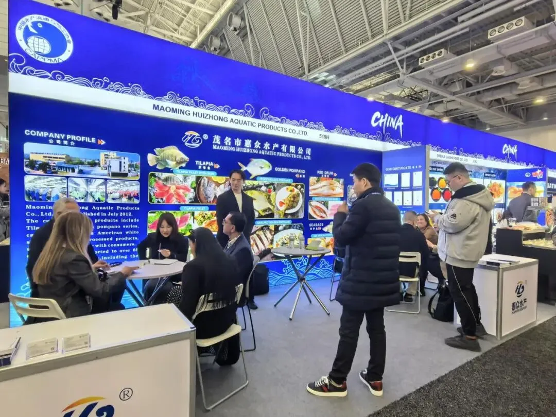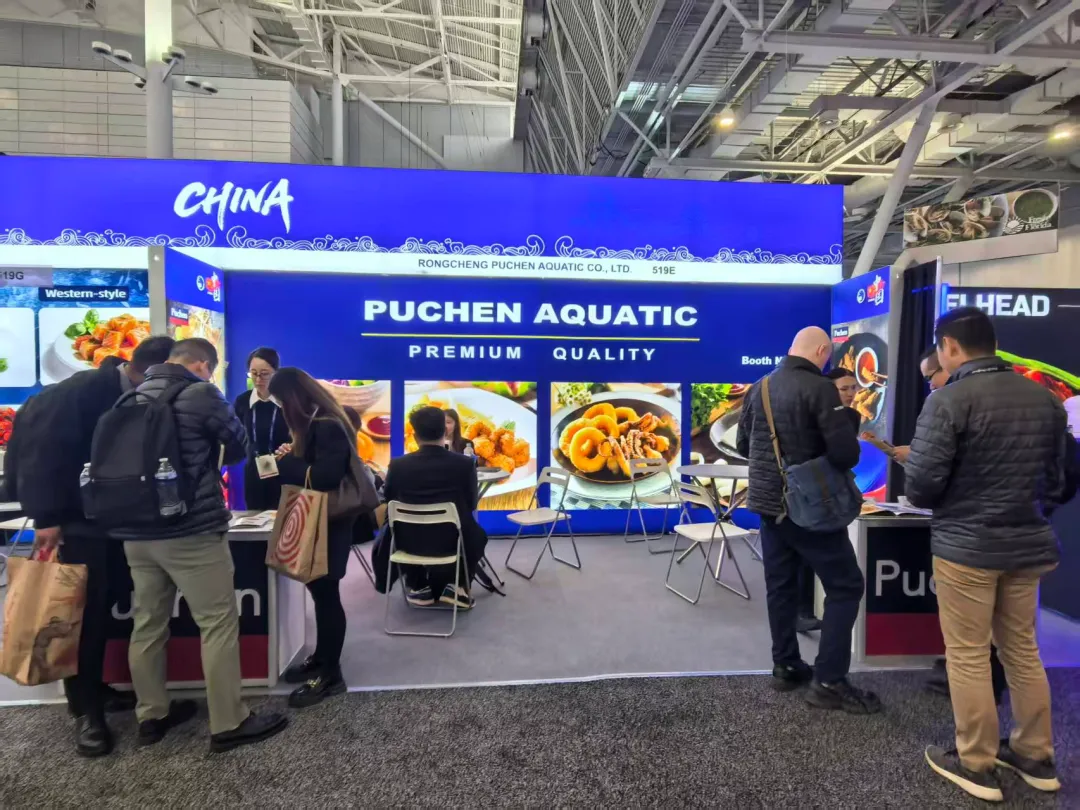 本届展会中,协会精心组织了来自山东、辽宁、海南、福建、广东、江苏、浙江、广西、北京、四川、云南等全国11个省(区、市)的60多家优质企业、近百名企业精英人士,以“中国水产国家展团/出访团”形式集中亮相,其中参展规模在所有海外国家展团中继续稳居首位,充分展现了中国水产行业的雄厚实力与蓬勃生机。今年,参展企业携自身核心产品、创新技术精彩亮相,全方位展示中国水产加工、养殖领域的高质量发展成果,凭借优质的产品品质、先进的生产技术和完善的供应链体系,赢得了北美及全球采购商的广泛关注与高度青睐,为中国水产企业拓展北美市场、深化国际合作搭建了坚实平台。