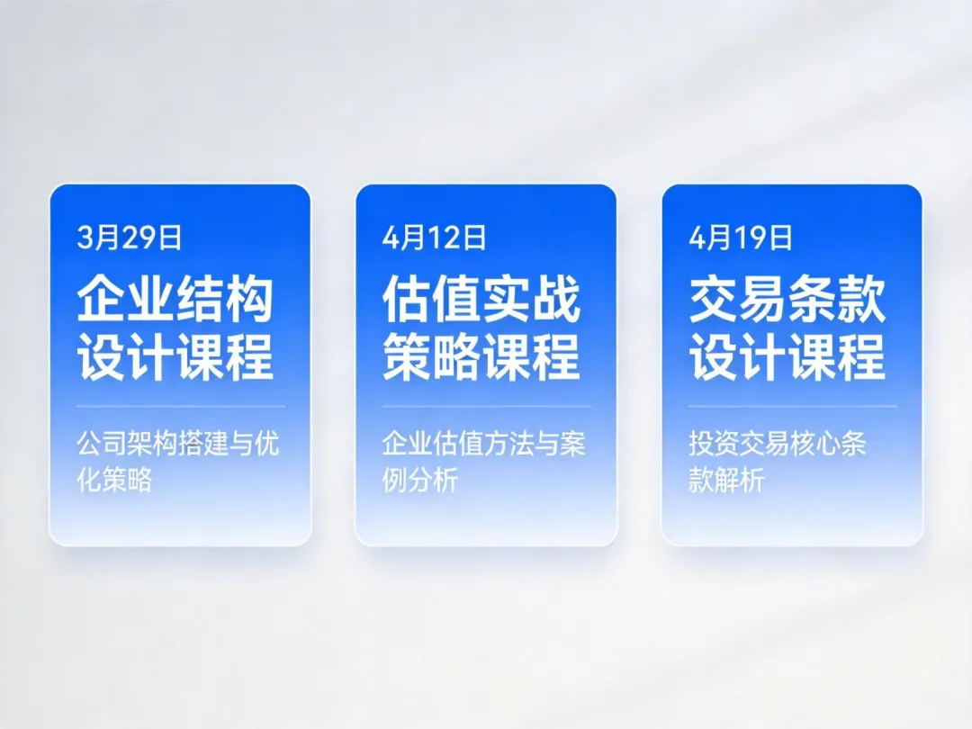 ? 你将获得 | 企业结构设计 + 估值实战策略 + 交易条款设计 + 案例实操演练 |