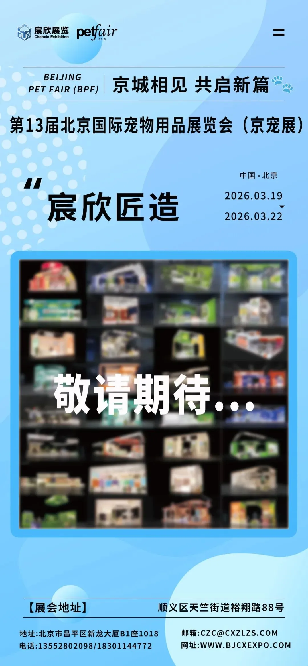宠聚京城,共赴新程。作为中国宠物行业开年风向标,2026北京国际宠物展如期启幕筹备,一场汇聚行业前沿力量、承载品牌期待的盛会,正从搭建环节开始,缓缓拉开帷幕。宸欣展览展示携深耕行业的专业积淀、精益求精的用心态度,全力投身本次展会搭建工作,以高端一站式服务,全程护航从搭建启幕到盛会落幕的每一个环节,让合作伙伴无需费心,专注绽放品牌光彩。