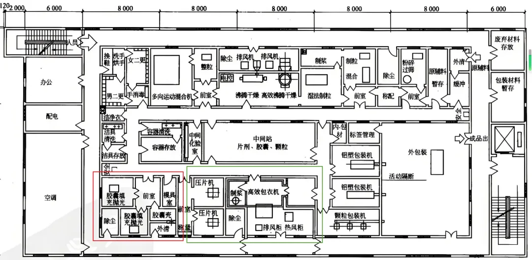 假设一家药品生产企业拥有一条成熟的片剂生产线,现在计划增加胶囊剂产品。由于胶囊剂与片剂生产在同一车间内,在功能间、生产设备上很多存在共用的情形,比如称量、粉碎、制粒、混合等操作间和设备。只是片剂产品有专用的压片间、胶囊剂有专用的胶囊填充和抛光间。我放了一张布局图,从网上找的,大概能展现我假设的情形。现阶段,企业计划向省药监局申报《药品生产许可证》增加生产范围时,企业面临两种申报策略的选择:- 策略二:将原“片剂生产线”更名为“口服固体制剂生产线”,在该生产线项下增加胶囊剂。