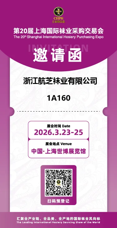 我们诚挚邀请全球各位新老客户、行业同仁莅临展位1A160,面对面交流袜业前沿趋势,共探合作商机,携手共赢未来!