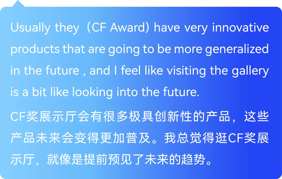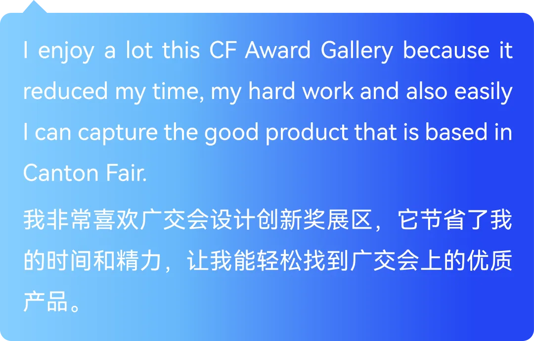 经过13年培育,广交会设计创新奖(简称CF奖)影响力逐步扩大,累计吸引10525家次企业20398件产品参评,评选出1058家企业1365件获奖产品。2025年CF奖参评规模创新高,共有1400家企业3210件产品参评,137家企业167件产品获奖,重点打造的CF奖展示厅,两届吸引展客商6.8万人参观,被誉为广交会“藏宝阁”。