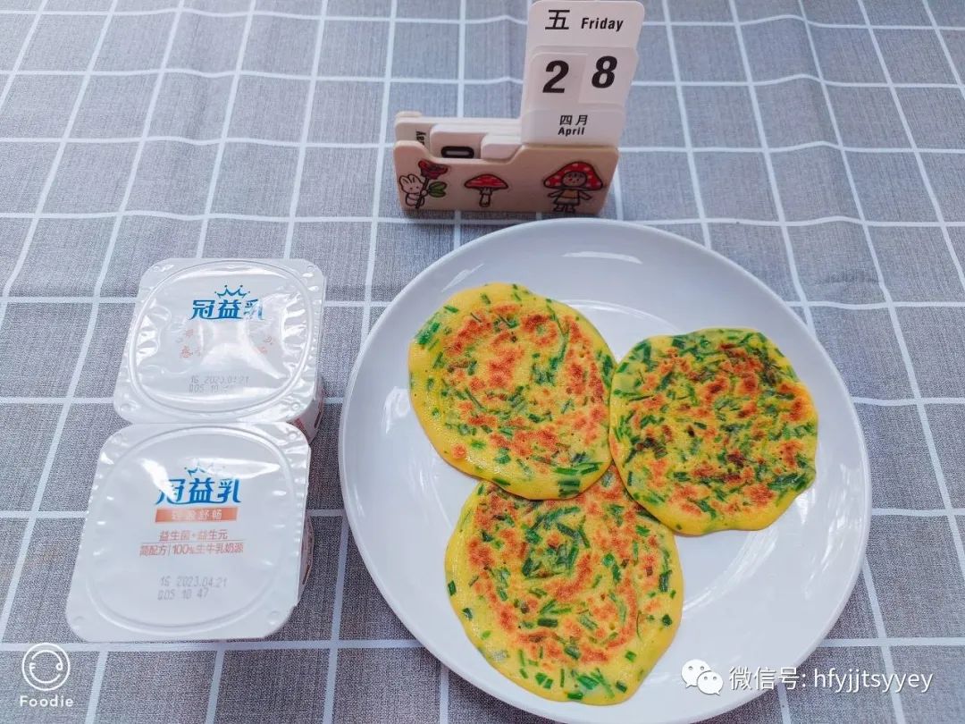 午点:韭菜鸡蛋饼 蒙牛酸奶