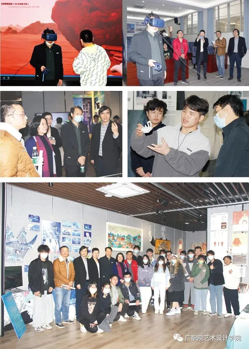 12月30日下午,广东职业技术学院副校长龙建佑,教务部部长古发辉来到禅城校区参观艺术设计学院2022届毕业设计作品展,艺术设计学院院长王丹玲,副院长陈海玲、肖机灵及专任教师陪同参观。