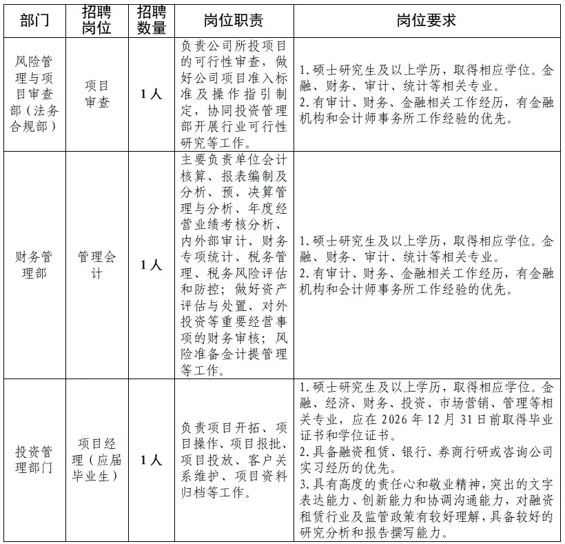 为进一步优化人才队伍结构,推动业务发展,浙江省富浙融资租赁有限公司部分职位面向社会公开招聘,现就有关招聘事宜公告如下: